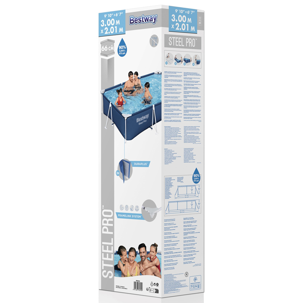 Transform your backyard into a summer oasis with the Bestway Steel Pro Frame Paddling Pool 9.10 x 6.7ft x 26 inch. This pool is designed with a corrosion-resistant steel frame featuring the innovative FrameLink System, which ensures a secure and durable connection. The protective connectors also prevent rust damage from metal-on-metal contact, making this pool a long-lasting investment. The pool's sturdy DuraPlus liner is constructed from ultra-durable three-layer material, reinforced for exceptional strength and puncture resistance. It is 15% more tear-resistant, 33% more stretch-resistant, and 83% more puncture-resistant than standard PVC, guaranteeing that your pool will withstand the test of time. Setting up and dismantling the pool is a breeze, requiring no tools, and the built-in flow control valve allows for quick and easy draining when it's time to store it for the off-season. With a water capacity of 3,300L (872 gal.), this 9.10ft above-ground pool offers the perfect balance of convenience, durability, and enjoyment for endless summers to come.