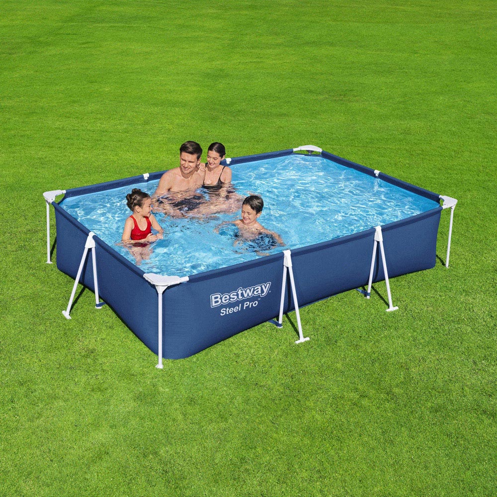 - Durable steel frame above ground pool