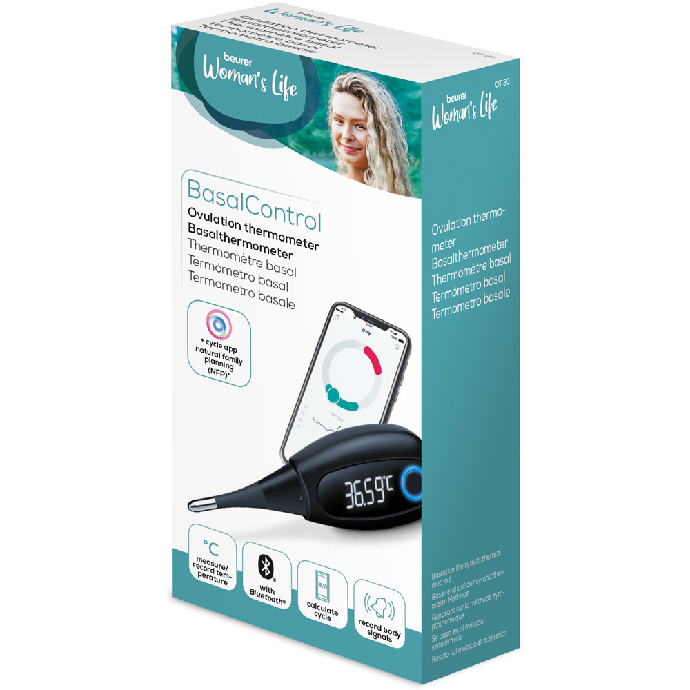 Fever measurement is made easy with this Beurer Digital Ovulation Thermometer. This digital ovulation thermometer will give you certainty in exact measurements and can be used orally or vaginally. It will measure your temperature to two decimal places for enhanced accuracy. Your reading will be displayed in just three minutes. It also has a flexible measuring tip for added comfort. You can then transfer your data to your smartphone using the free OVY app or Bluetooth to decipher your cycle, identifying fertile and non-fertile days. This thermometer will turn the switch off automatically, is waterproof, and is suitable for disinfecting.
