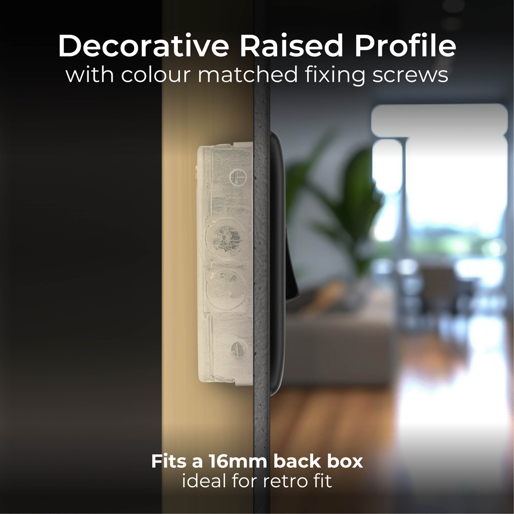 Go for the perfect power accessory with the BG Nexus 2 Way 20A Matt Black Single Switch 5 Pack. These single light switches come in a pack of five and feature a sleek, raised design with gently rounded edges. They include colour-matching screws and allow for two-way switching, enabling the addition of a second switch position in a circuit. This feature makes it possible to have multiple switches controlling the same light from different locations, such as the landing or hallway. The switches are equipped with a moisture control gasket to prevent tarnishing, and the captive, backed-out terminal screws allow for quick and easy installation. With their high quality and stylish design, they make a great addition to any decor.