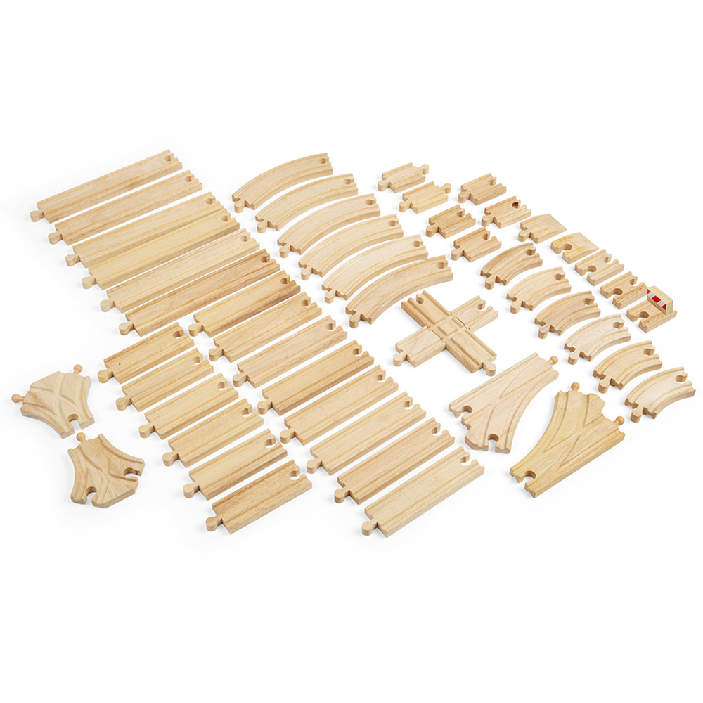 - Wooden train track expansion bundle of 49 pieces