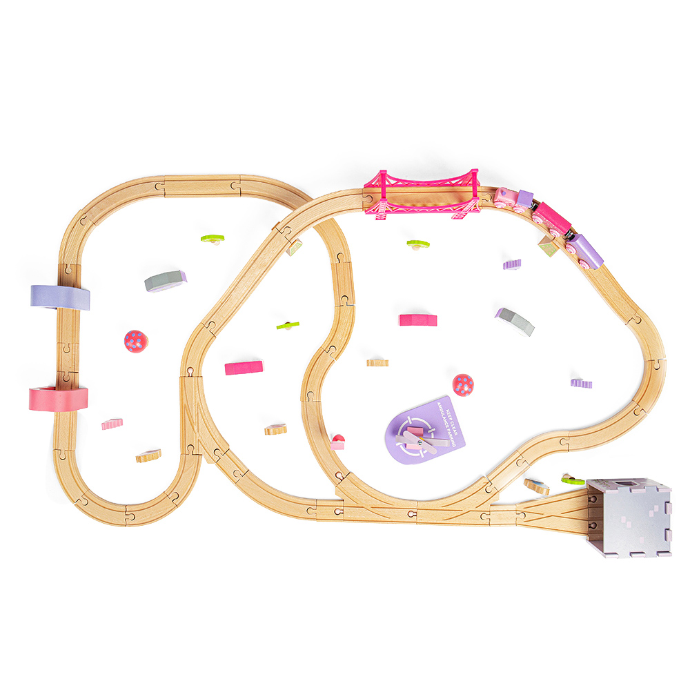 Keep your child busy and active for hours with our Bigjigs Rail 75-Piece Fairy Town Train Set. The fairies have come to town and the train set is ready to depart to a magical fairy tale land far, far away. Featuring pinks, pastels and fairy figures, this wonderful wooden train set makes a perfect addition to your child's toy collection. This wooden train set comes with 75 play pieces to ensure there's no limit to imaginative play. From fairy figures to brightly coloured trees, houses and a colour-coordinated helicopter, it is sure to appeal to those who adore pretty landscapes. Additional accessories are available to expand this wooden railway set and Bigjigs Rail is compatible with most other major wooden railway brands. Made from high-quality, responsibly sourced materials, the play set is quite safe for your little one. Ideal for children above three years and conforms to current European safety standards.