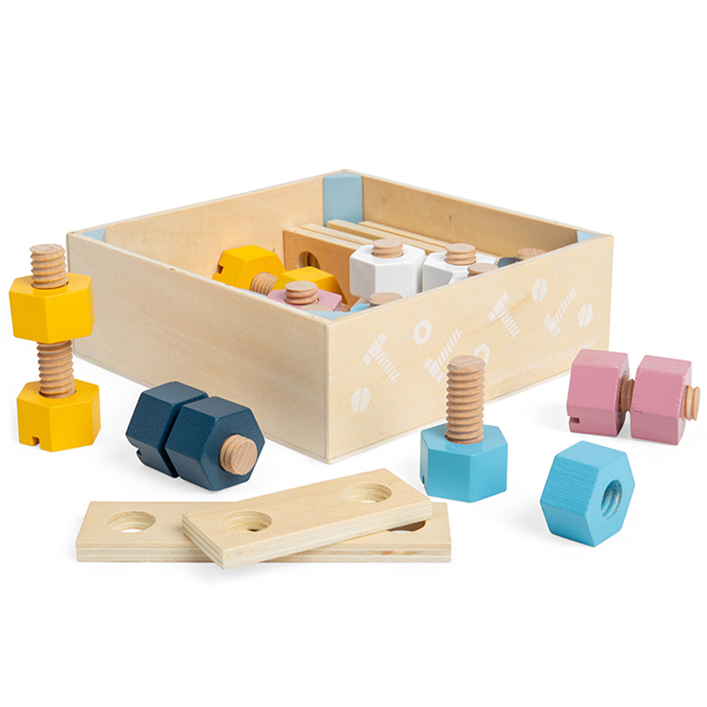 Let little crafters loose on their next DIY project with this Certified Wooden Crate of Nuts and Bolts from Bigjigs Toys. Featuring 20 pieces, the crate helps to develop dexterity and hand-eye coordination. The large size is ideal for little hands to grip, hold and examine as they play. Supplied in a handy eco-friendly wooden crate, this construction toy is ideal for young engineers who are on the move. Also, with a range of different pastel colours, the play possibilities are endless. The toy is made from high-quality, responsibly sourced materials and conforms to current European safety standards. Suitable for ages 18 months and above.