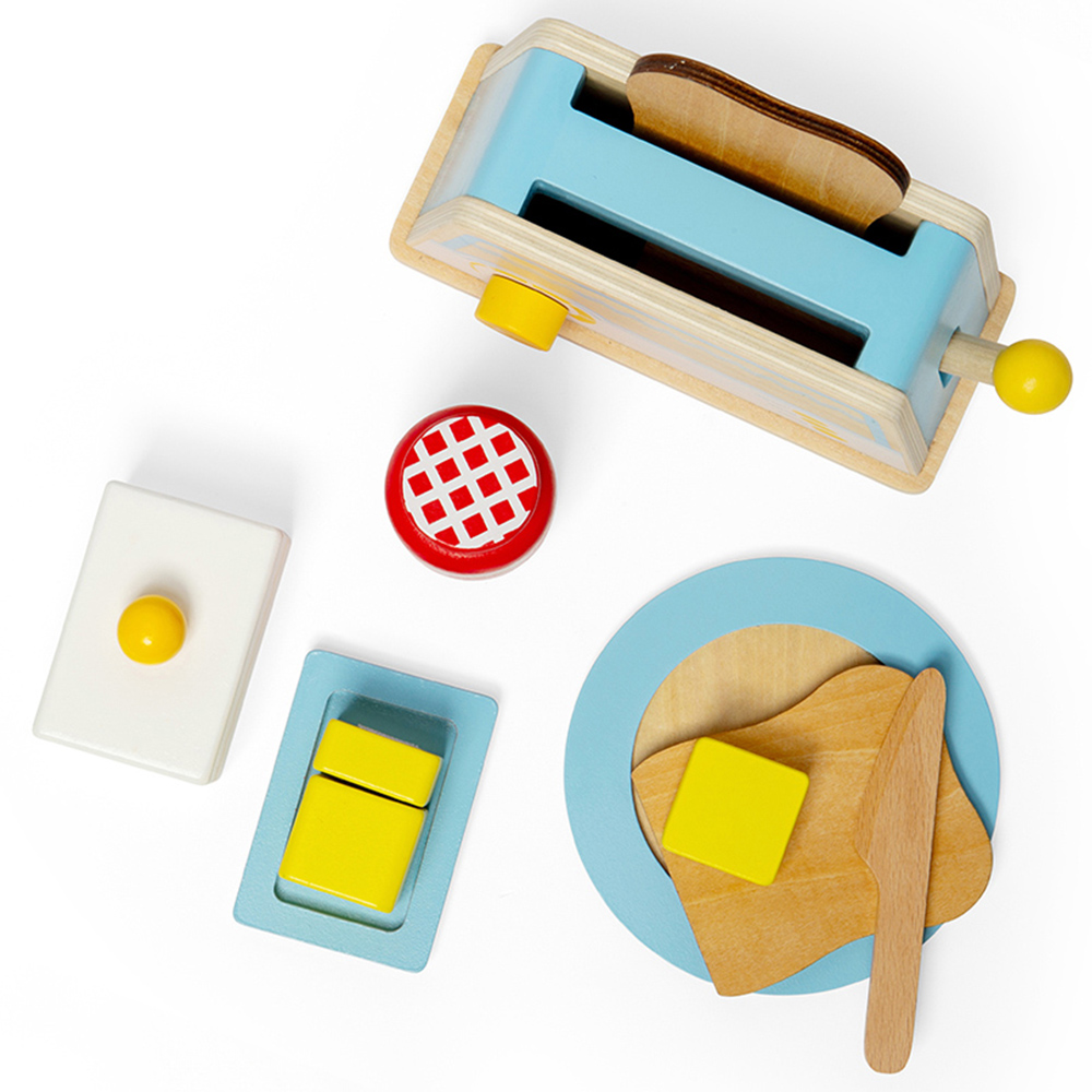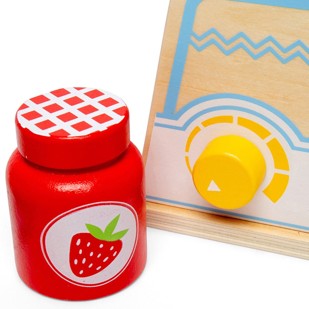 Encourage imaginative play with this Bigjigs Toys 6-Piece Wooden Breakfast Set. This set includes a wooden toaster with a heat dial and working lever, which you can push down and then pull up when the toast is ready. It also comes with a butter dish with sliceable butter inside, two pieces of toast, a pot of jam and a wooden knife. The role-play toy supports children’s development and helps them pick up key life skills, as they learn how to use and cook with pretend kitchen equipment. The set is made from sustainably sourced FSC-certified wood and coloured with non-toxic paints and lacquers. Plus, it conforms to current European safety standards.