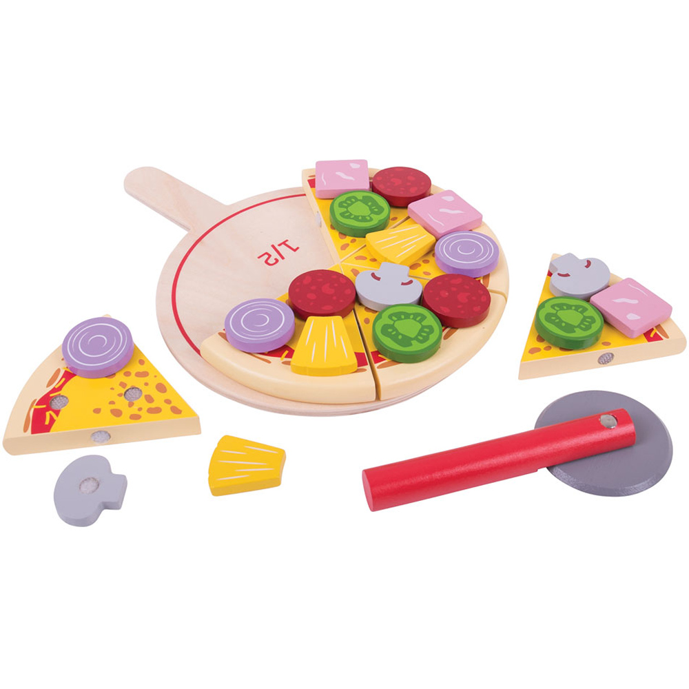 Bigjigs Toys 6 Piece Wooden Pizza With Toppings and Slicer