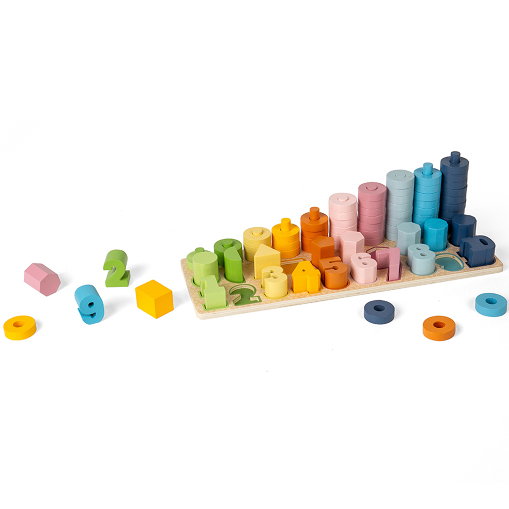 Teach your toddler how to count and sort shapes with the Bigjigs Toys 78-Piece 1 to 10 Wooden Counting Board. This maths toy comes packed with plenty of activities designed to motivate learning through play, including a number sorter, shape matcher and stacking toy. The all-in-one shape and number puzzle helps to nurture children’s cognitive development as they learn how to problem solve and think logically. It also makes a fun way to improve children's fine motor skills, coordination and number and shape recognition. This board is made from sustainably sourced FSC-certified wood and coloured with non-toxic paints and lacquers. Plus, it conforms to current European safety standards.
