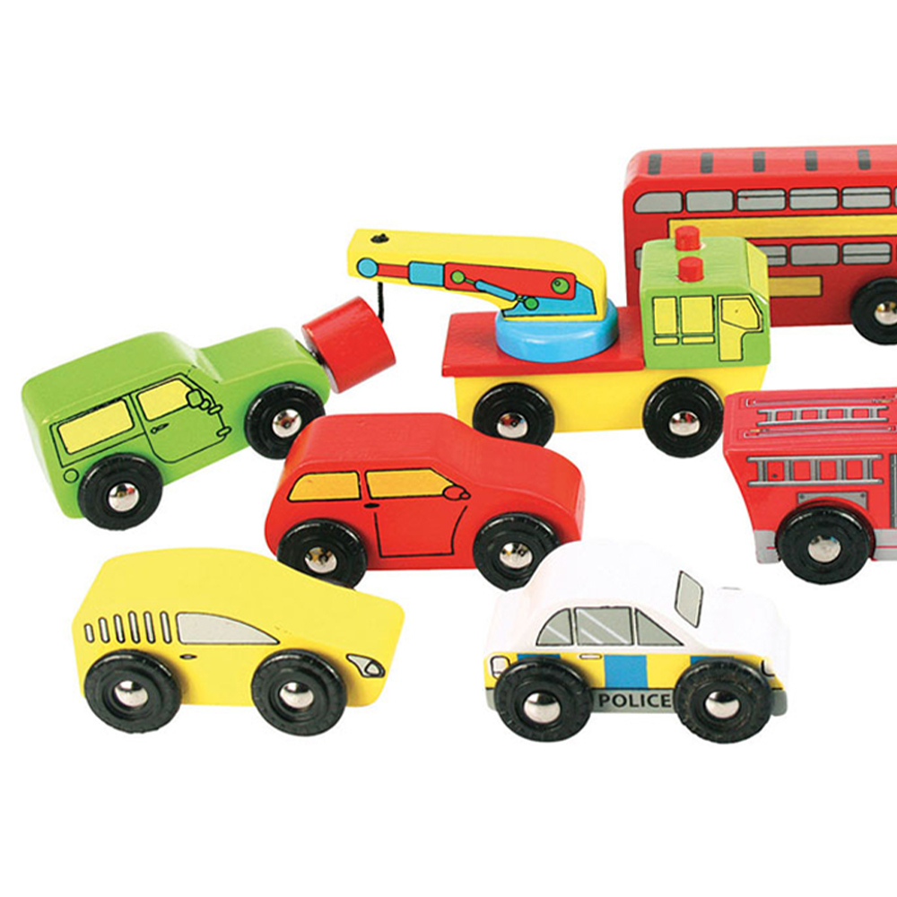 Keep your child busy with this Bigjigs Toys 9-Piece Wooden Vehicle Pack. This wooden set includes colourful cars, three emergency vehicles, a bus, and a tow truck to make up this fleet of vehicles. Also, its tow truck has a magnetic winch to enable it to pull a broken-down vehicle. This set is perfect for endless hours of creative role-play fun. It consists of nine play pieces and is compatible with most other major wooden railway brands. The set is made from high-quality, responsibly sourced materials and conforms to current European safety standards. Suitable for children over three years of age.