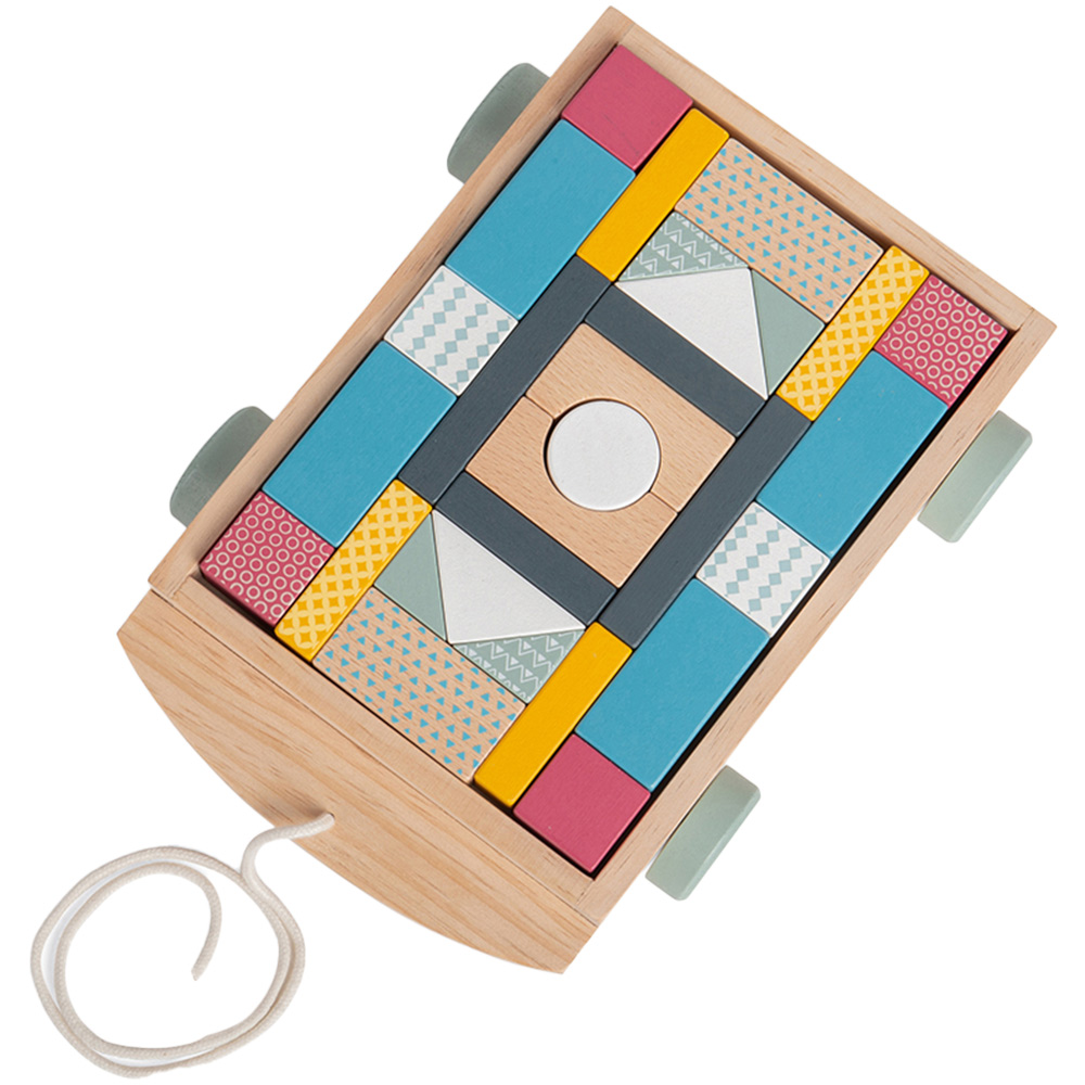 Little hands will love pulling along our delightful Brick Wooden Cart from Bigjigs. Packed with 30 play pieces, it’s ideal for developing children’s hand/eye coordination and enhancing their shape knowledge and colour recognition. The neutral colour palette is engaging for young minds and suitable for both little boys and girls. The wooden shapes are perfectly sized to fit neatly into the wooden pull cart and have unique patterns that are eye-catching to tots. Suitable for 18 months plus. The ideal Montessori toy, this unique wooden cart doubles as a fun stacking toy. Made from Certified premium-quality, sustainable wood and coloured with non-toxic paints and lacquers, it conforms to current European safety standards.