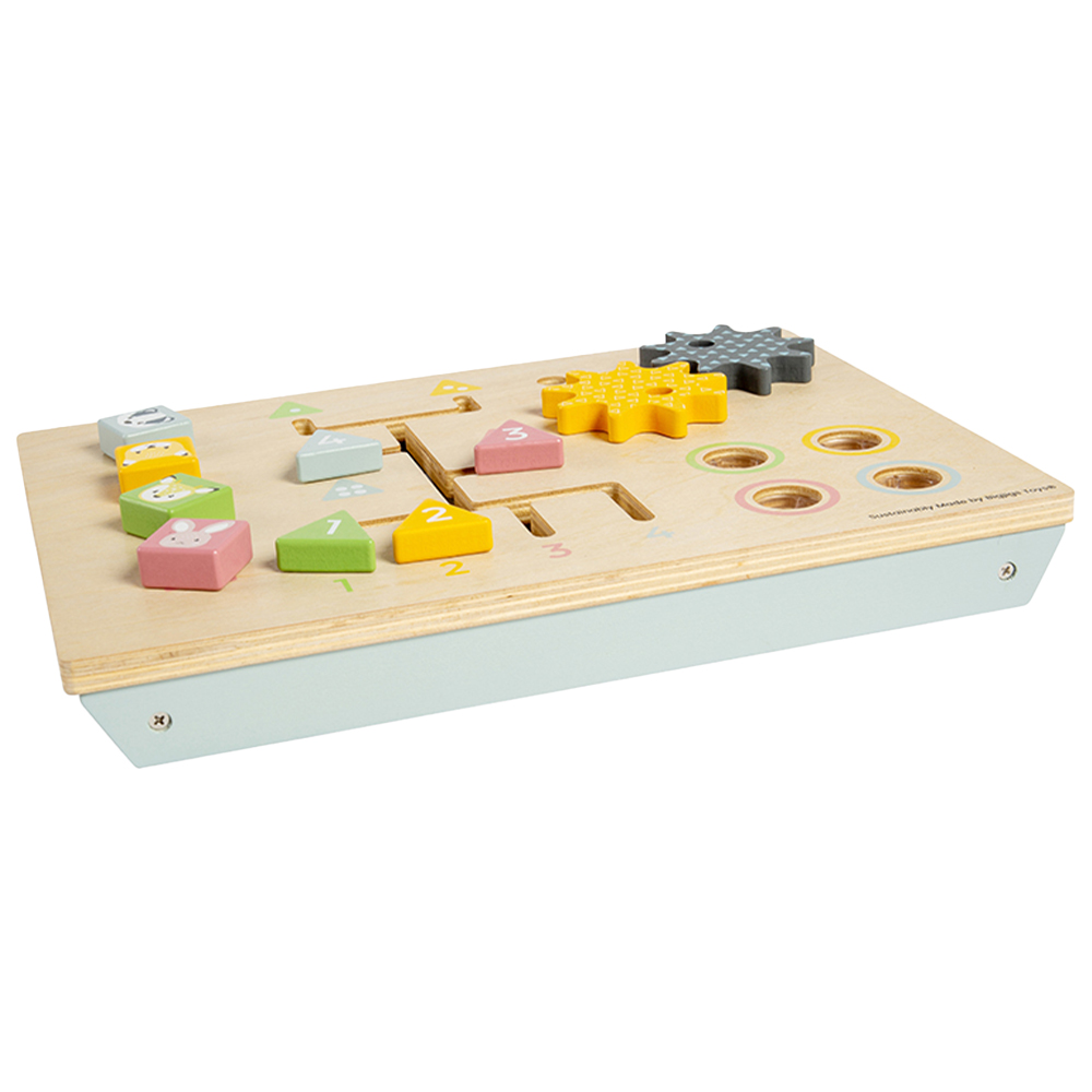 Engage curious youngsters with this Certified Wooden Activity Table Bench from Bigjigs Toys. Taking inspiration from nature, not only is this toddler activity table made from sustainably harvested FSC-certified wood, but is also packed with plenty of woodland features to keep little hands busy. Little hands can use the three wooden mallets to hammer in the chunky nail pegs, screw in the animal bolt heads, spin the wooden cogs, and slide the four numbered triangles down into the correct slots. This comprehensive wooden activity table encourages discovery through play, developing tots’ coordination, fine motor skills and dexterity. Plus, four sturdy table legs ensure it can withstand many enthusiastic play sessions. Suitable for ages 12 months and above.