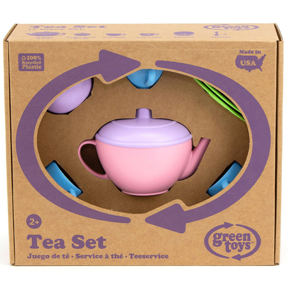 Get ready to serve up some eco-friendly fun with the BigJigs Toys Green Toys Tea Set with Pink Teapot! This delightful tea set is the perfect companion for little hosts and hostesses who want to enjoy a tea party while also caring for the planet. With its vibrant pink colour and 17-piece set, it's sure to bring joy to any tea-time gathering. The set includes everything needed for a proper tea party: a charming pink teapot with a lid, a sugar bowl with a lid, a creamer, four cups, four saucers, and four spoons. Made in the USA from 100% recycled milk jugs, it's a shining example of sustainable toy production. Also, it's completely safe and non-toxic, containing no BPA, PVC, phthalates, or external coatings. Suitable for ages two and above, kids will love using their imaginations as they pour tea, serve treats, and engage in creative pretend play.