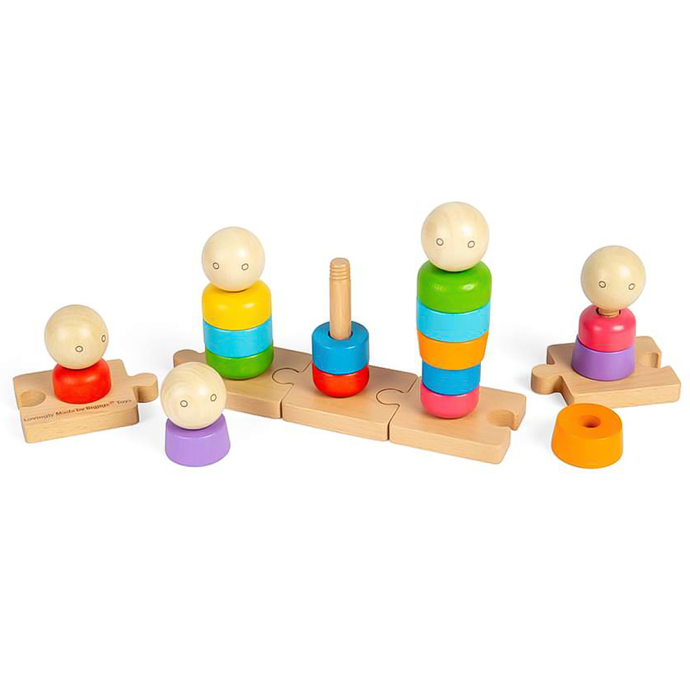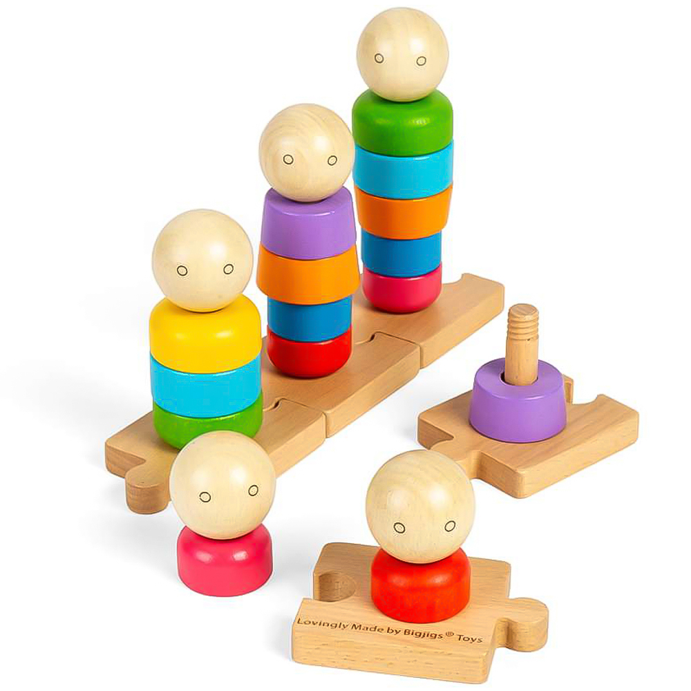 Make stacking and sorting a family affair with the Bigjigs Toys Rainbow Family! This 25-piece wooden Montessori stacking toy offers a vibrant and engaging way for toddlers to develop crucial skills. Each of the colourful shapes and faces fits onto individual pegs, standing on interconnected wooden puzzle pieces for an extra dimension of fun. Designed to enhance hand-eye coordination, problem-solving abilities, and shape and colour recognition, this toy is crafted from high-quality, sustainable FSC-certified wood and painted with non-toxic colours, ensuring safety and durability. It's an ideal educational tool that conforms to European safety standards, making it perfect for little ones aged 12 months and up.