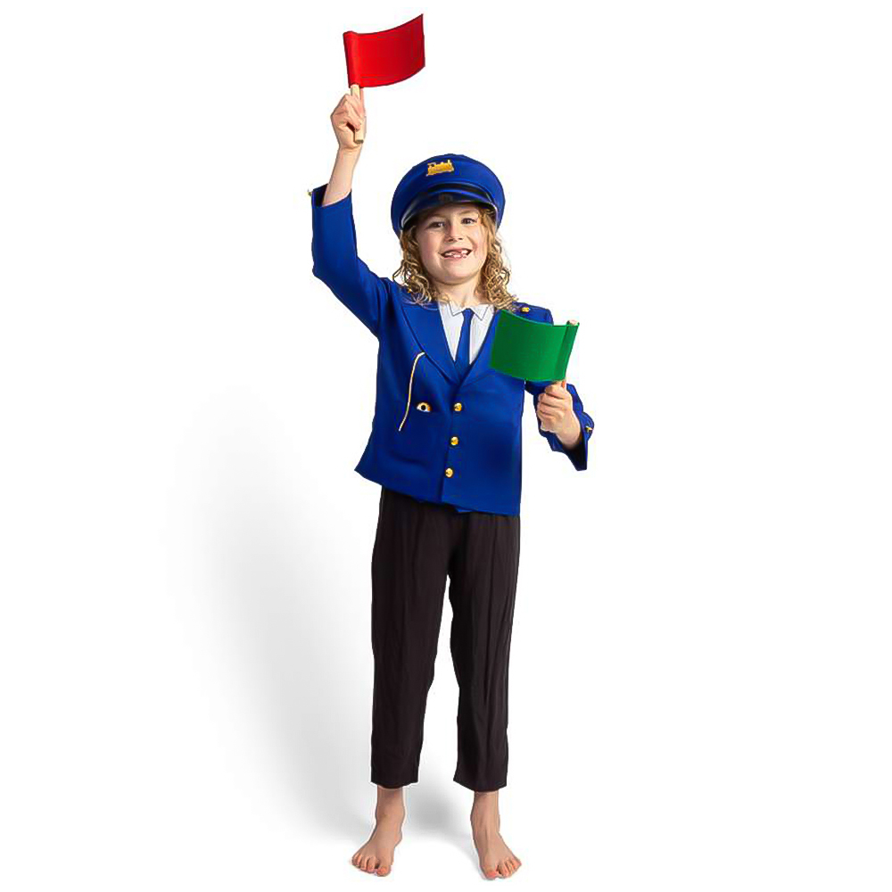 Fast track to fun with this cute Train Conductor Dress Up Set! Imaginative locomotive adventures await as little train enthusiasts pull on their double-layered blue railway jacket and classic conductor hat. The set also comes with an official name badge, stop-and-go signal flags, and a pocket watch to keep track of time on the platform. These costumes expand children’s knowledge of the world by inviting them to explore diverse roles and take on different characters. This style of play also fosters their social development as tots interact with friends and collaborate on storylines, enhancing their skills. These costumes are made from premium quality materials and have been tested to the latest EN71 and REACH regulations. Jacket measures 44cm height x 36cm width. Suitable for 3+ years.