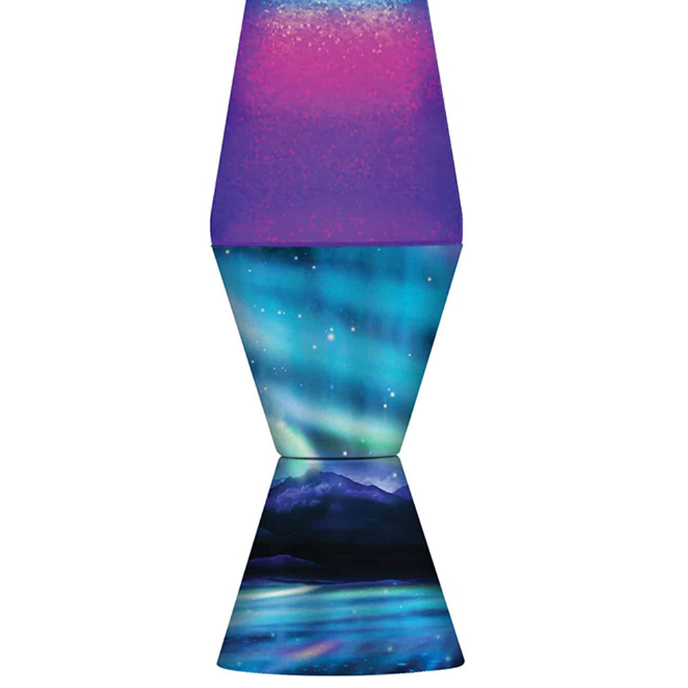 Invite the magical aurora borealis into your kiddie’s bedroom with this enchanting Northern Lights Lava Lamp. The amazing purple and blue swirling effect is created by sparkling glitter and clear liquid in a tri-coloured glass globe. The hand-spun metal base features flowing patterns and waves inspired by the wonder of the real Northern Lights! It makes for a perfect gift for children and teenagers. Helping to calm and soothe, this large lave lamp is 14.5 inches tall and includes a 25-watt lava lamp bulb to illuminate your space.