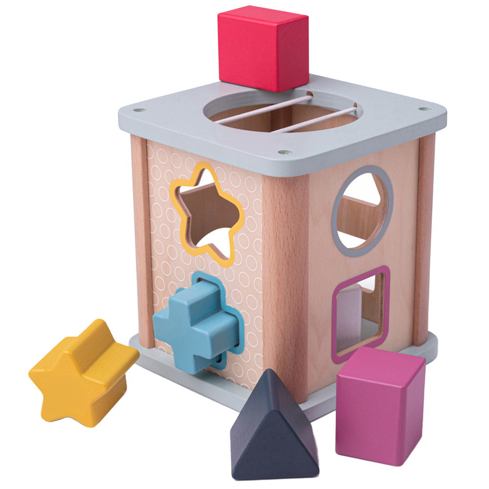 Tots will be captivated with this 100% FSC Wooden Shape Sorter from Bigjigs Toys. Slot the brightly coloured wooden shapes through the correct slot on the top of the shape sorter and watch them drop into the middle. It features a hole for easy access to the wooden shapes. This wooden shape sorter helps little ones develop their dexterity and coordination skills through play. The soft colour palette makes this wooden baby toy suitable for both girls and boys. Made from FSC Certified materials (FSC C147826), this shape sorter has been made in the most ethical way possible. The quality of the wood also means it has many years of play in it. Conform to current European safety standards.