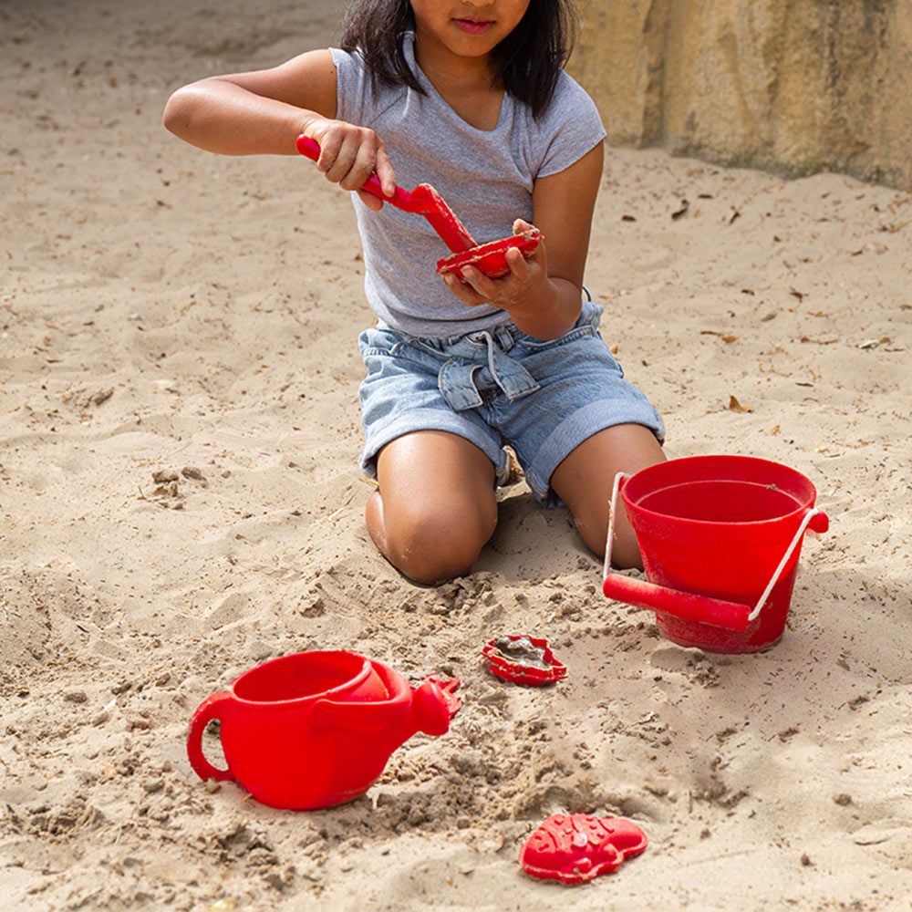Make most of the outdoors this summer with your little ones with this Bigjigs Toys Silicone Beach Bundle. Made from eco-friendly, food grade silicone - the pack includes activity bucket, eco spade, flexible flyer, watering can and sand moulds. Silicone is flexible, foldable and stain-resistant for convenient cleaning. Made from wheat fibre similar to ABS plastic the spades are tough like plastic, but gentle on the earth. Packaged in brown craft paper - it is suitable for children 18 months and above. Colour: Cherry Red.