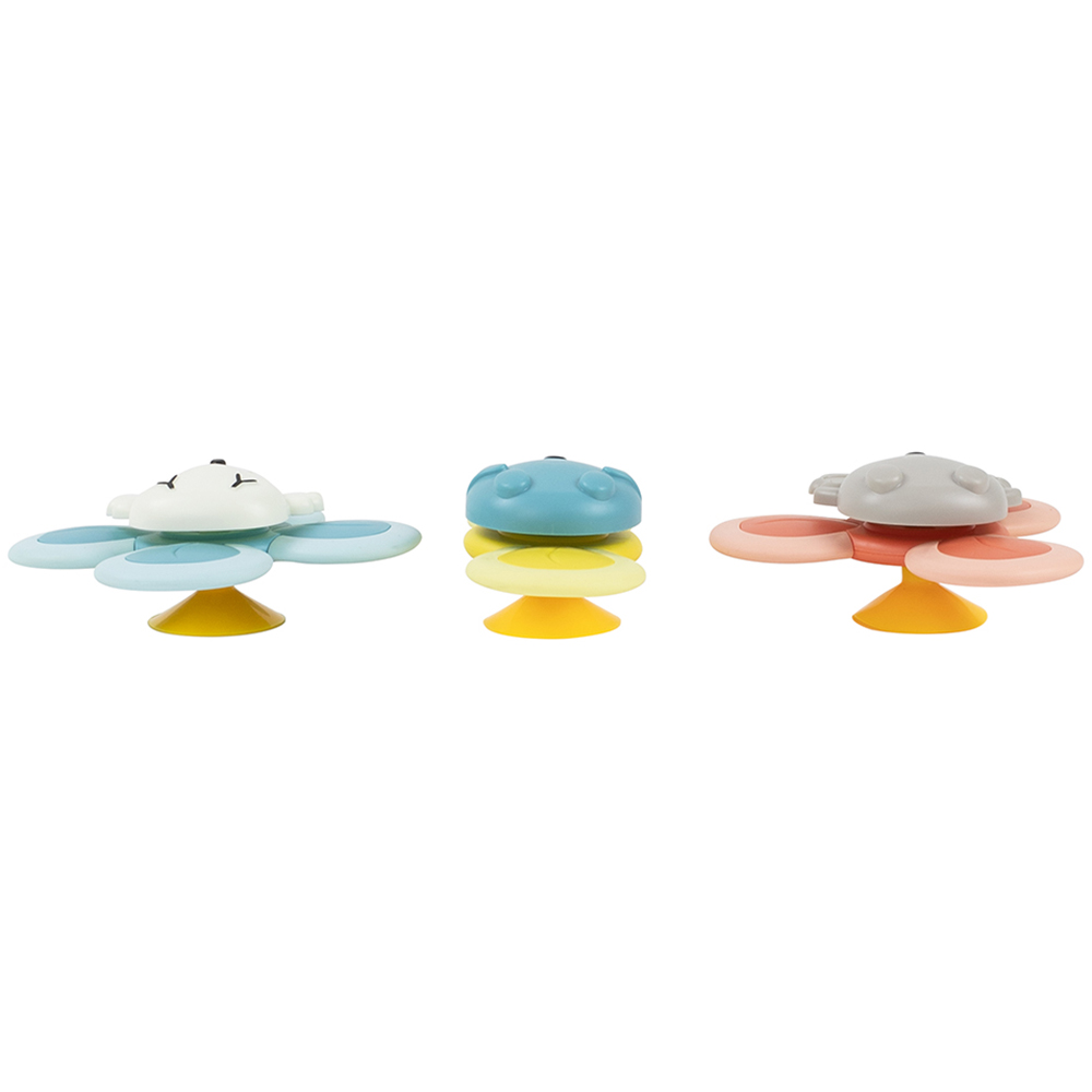 Shake, rattle and swirl! This hugely popular set of Tiger Tribe Animals Sensory Spinners from Bigjigs Toys features a trio of wildlife favourites from Down Under - a wombat, koala and cockatoo. Each sensory toy comes with a two, three or four-paddle spinner and a strong-sticking suction cup for easy attachment. They're great for keeping bambinos entertained in their high chair, in the bath or while travelling in the car. The set also makes a lovely baby shower gift. Suitable for ages six months and above, these sensory spinners for babies help introduce them to new textures, develop cause-and-effect learning and improve their dexterity and fine motor skills.