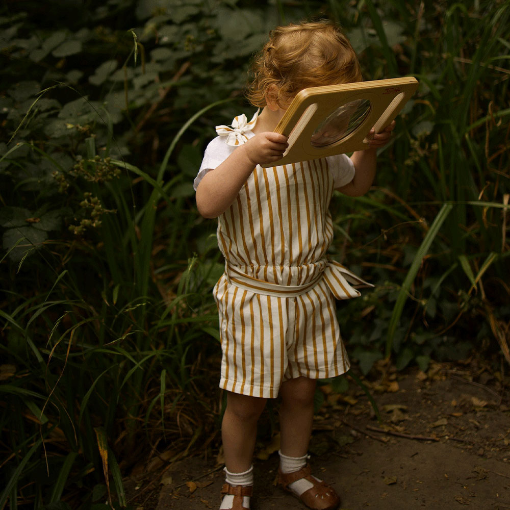 Step into the world of discovery with the BigJigs Toys Two Handed Magnifier Glass! Unleash your inner explorer and venture into the great outdoors to uncover a hidden universe magnified before your eyes. This unique magnifier puts a Bigjigs twist on a classic tool, featuring two handles and a large wooden design. Designed with little hands in mind, it is easy to grasp and hold, empowering young adventurers to embark on thrilling expeditions. Not just a toy, this magnifier is an invaluable educational tool. It opens up a whole new realm of possibilities, from hunting minibeasts and studying insects and plants to examining small objects and deciphering the tiny text. It even adds excitement to games of spies and detectives, fuelling imaginative playtime. Magnifiers are renowned for developing observation skills and encouraging active exploration. They inspire young investigators to get up, get playing, and delve into the wonders of the world around them. With its sturdy and robust construction, this magnifier is built to withstand the rigours of adventurous exploration. Versatile and adaptable, this magnifier is equally suited for use in the classroom or at home. Suitable for indoors or outdoors. Its high-quality and responsibly sourced materials ensure durability and safety, conforming to current European standards. Suitable for ages 18 months and above, it is a gateway to discovery and learning.