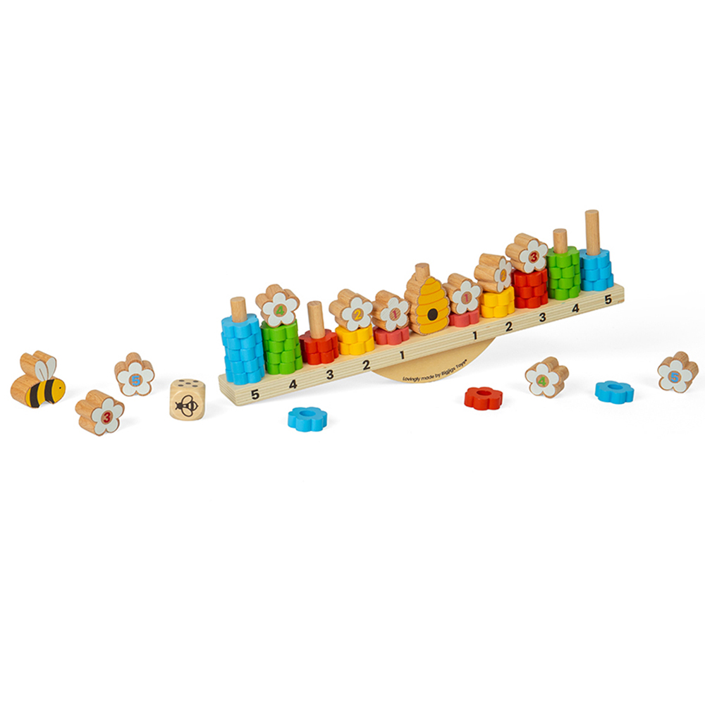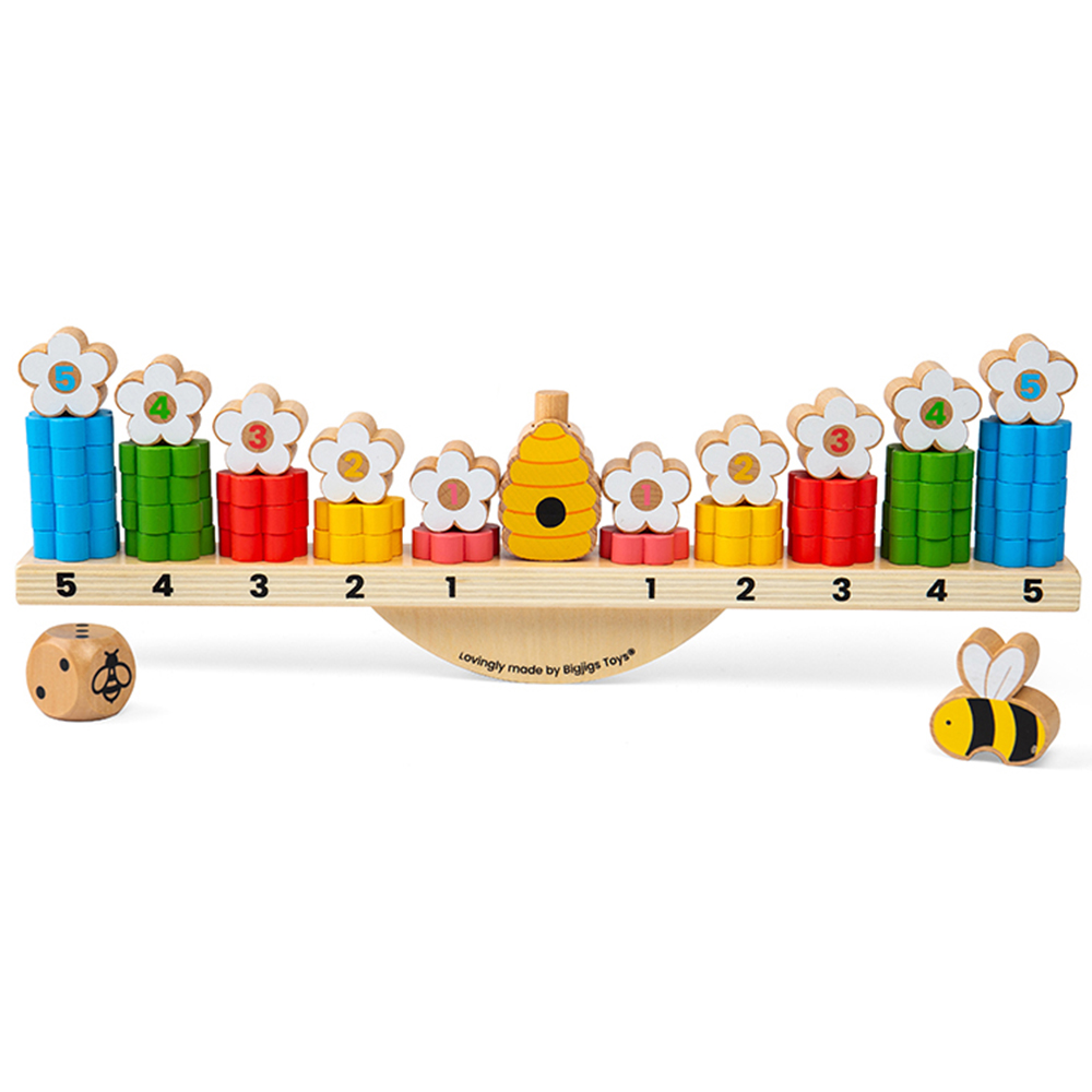 Little honey monsters will be buzzing to play this Bigjigs Toys Wooden Bee Balanced Game. Fun for all the family, the aim of the game is to keep the board balanced to gain extra turns, while stacking as many coloured flowers on your side of the board as you can. The first player to stack three white flowers on the poles wins the game. The wooden bee can be used to rebalance the board or block your opponent. Also, this game works as a wooden balance game and stacking toy in one. It teaches children important STEM skills such as critical thinking, logic and strategy. Stacking the flowers on the poles will also help to improve their grasp, dexterity and coordination. This game is made from sustainably sourced FSC-certified wood and coloured with non-toxic paints and lacquers. Plus, it conforms to current European safety standards.