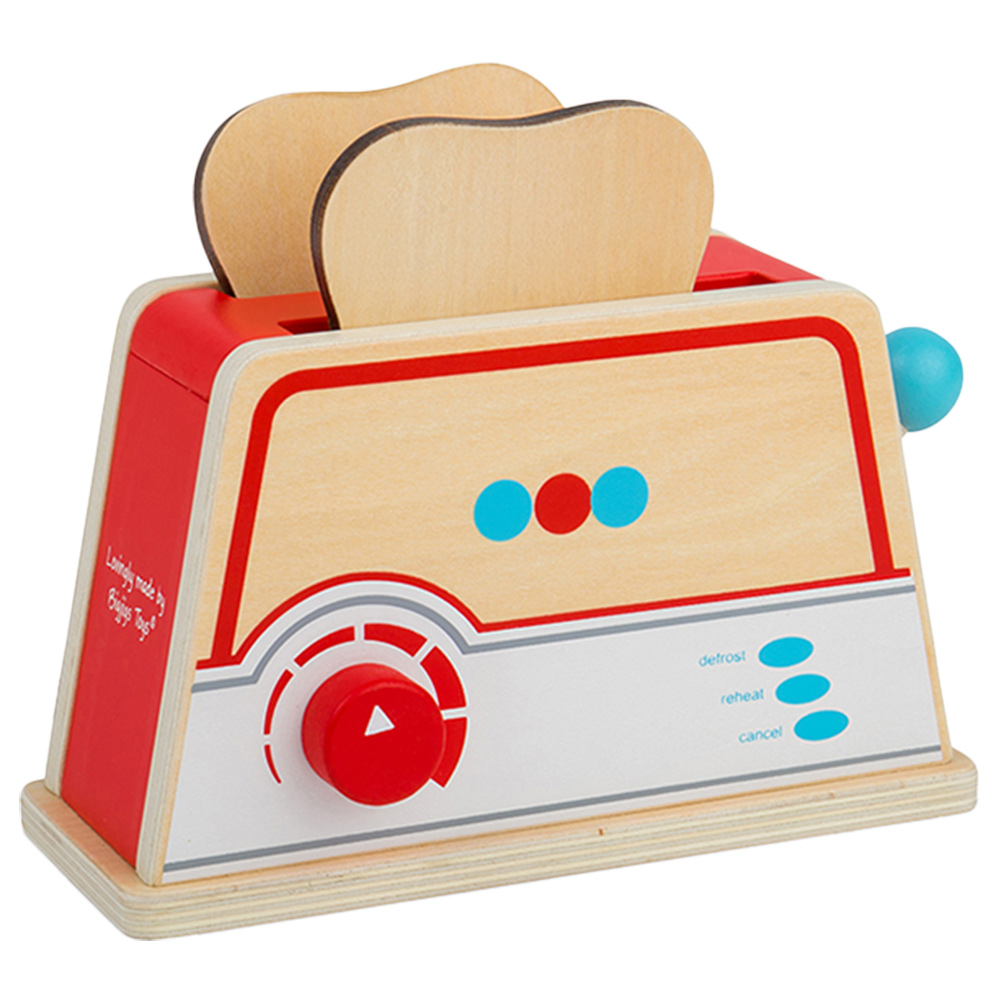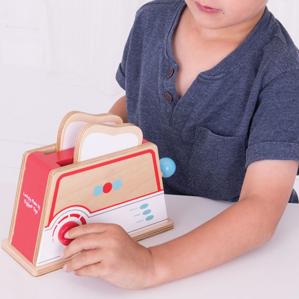 It's time for toast with the Bigjigs Toys Wooden Toaster, a great addition to any play kitchen. Simply place the wooden bread slices in the slotted toaster, and then adjust the dial to the preferred setting. Whether your little one likes it lightly toasted or well done, there is a setting to suit everyone. Pop it up once it is ready and serve fresh toast at any time. This toy is a great way to introduce even more fun to role-playing and inspire imaginative play sessions. Also, the toy is made from high-quality, responsibly sourced materials and conforms to current European safety standards. Suitable for ages three years and above.