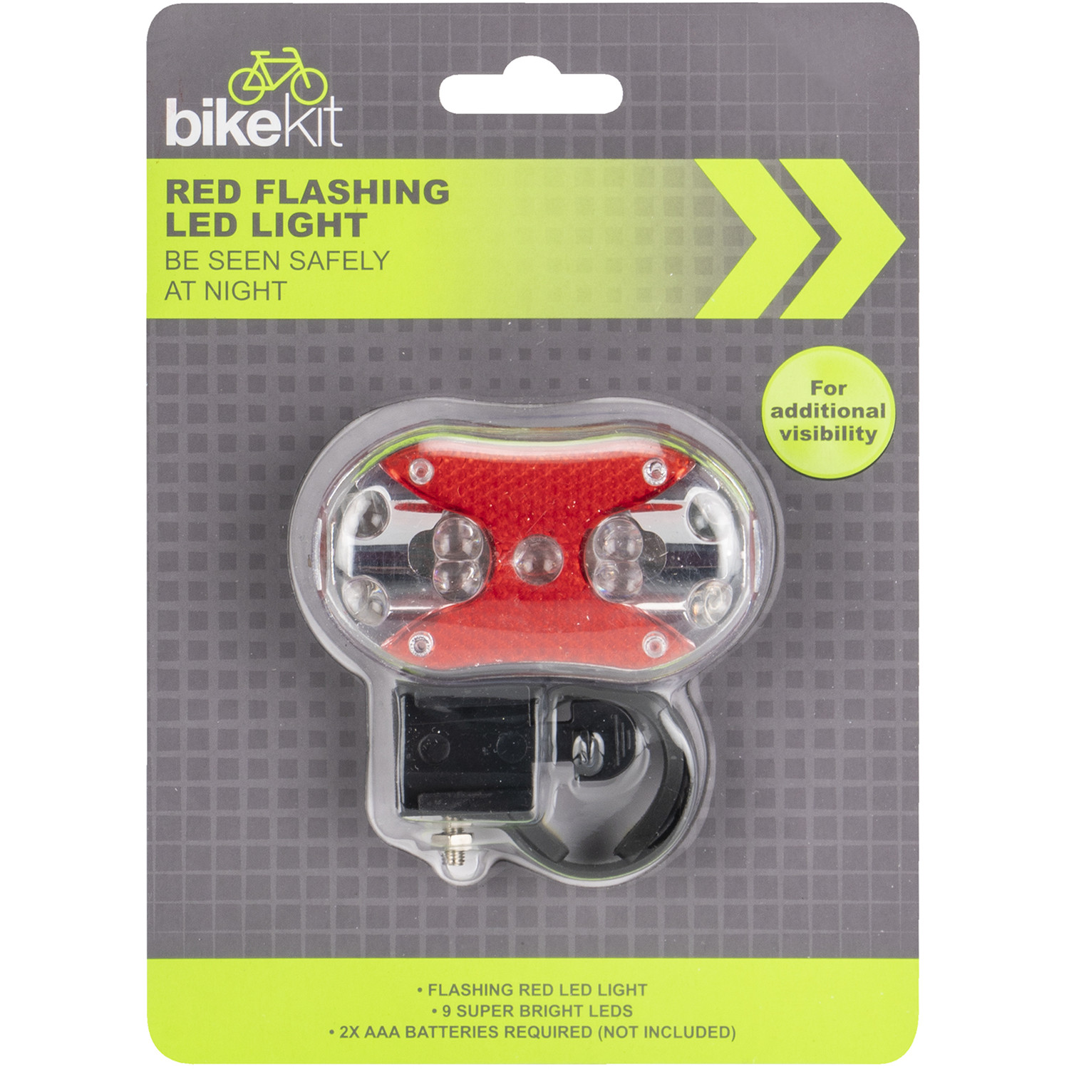 Be seen safely at night with the Red Flashing LED. Providing additional visibility for your bike, this light clips onto your frame with ease and will flash a bright red colour through the nine super bright LEDs. Cars and pedestrians will see you as they approach and will know to avoid you while you're cycling.