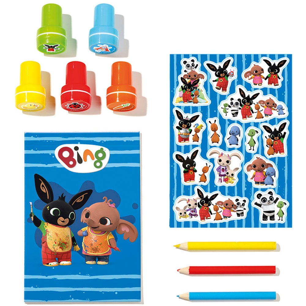 Introduce your little ones to creativity with Bing Creativity Stamp Set. This set of five fun self-inking stamps, stickers and coloured pencils - is the perfect tool to teach them about art. Suitable for ages three years and above. Bing licensed. Usage: Push them into the included notepad and finally colour the images in, you can also add stickers to the book.