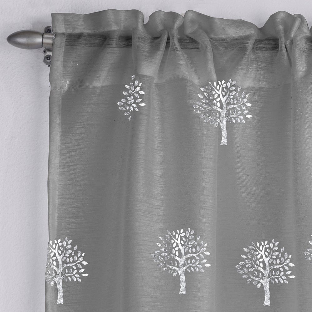 Dainty and elegant, the Birch Panel Curtain is cut from sheer fabric and embellished with charming tree silhouettes in a glossy metallic design. Allowing natural light to flow into your home while increasing your privacy, this voile is a classy and lustrous accessory for French doors, patio doors, or other glass entrance-ways.
