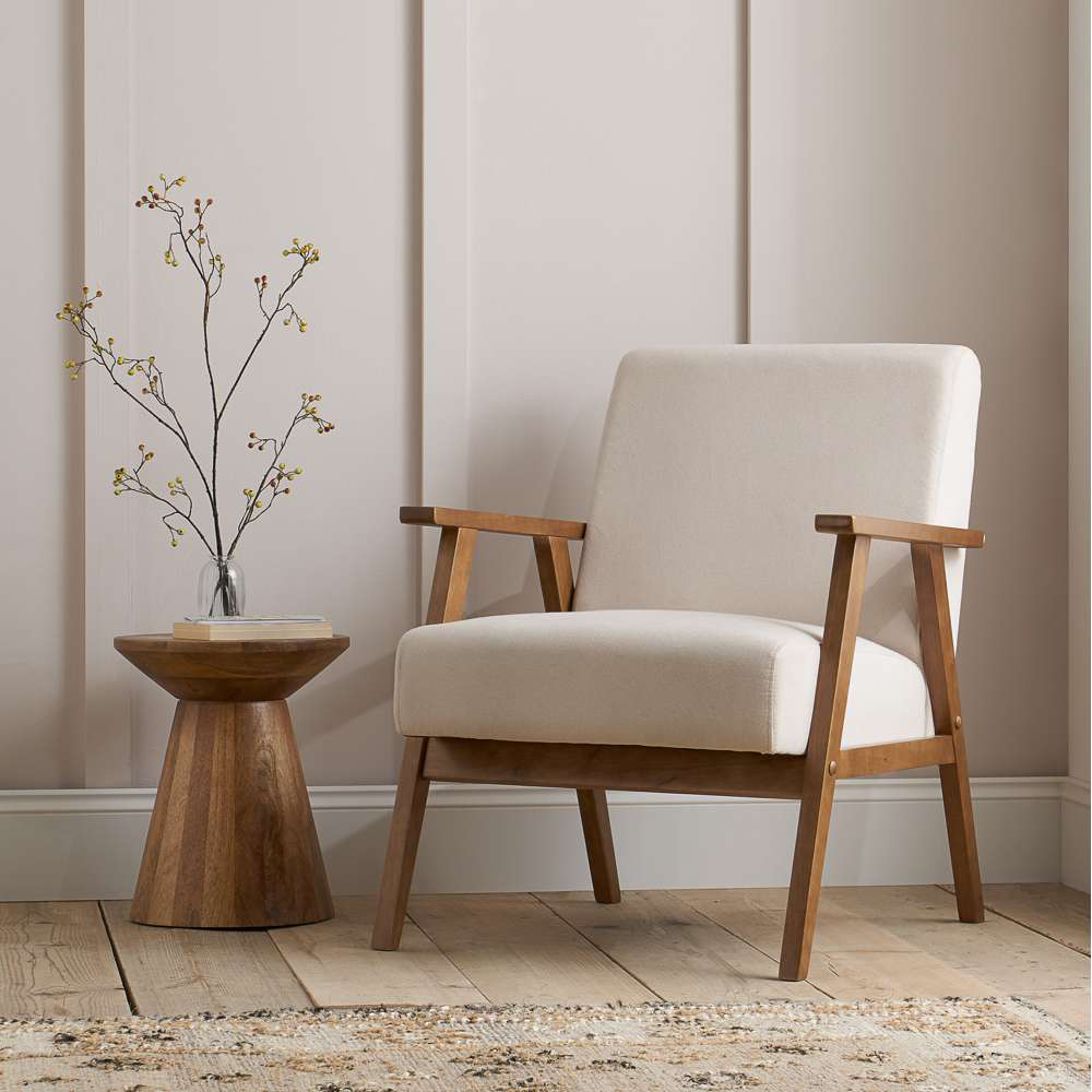 Introduce comfort to your home furnishing with the Birlea Ellwood Fabric Armchair. This stylish and comfortable seating option enhances any space with its sleek design and inviting upholstery choices. The chair features a durable wooden frame available in rich walnut or light oak finishes. The Ellwood's minimalist aesthetic fits seamlessly into various décor styles, while its plush seat and backrest ensure exceptional support for relaxation or social gatherings. Perfect for the living room, bedroom, or home office, the Ellwood serves as a functional chair and a striking accent piece.