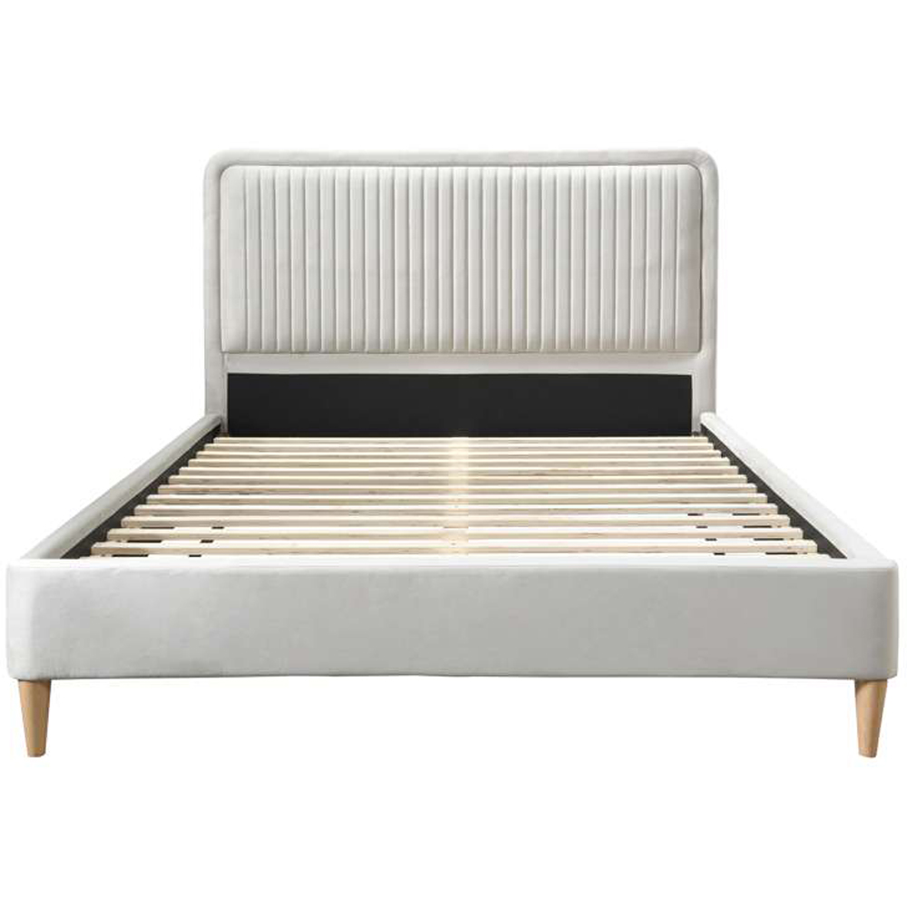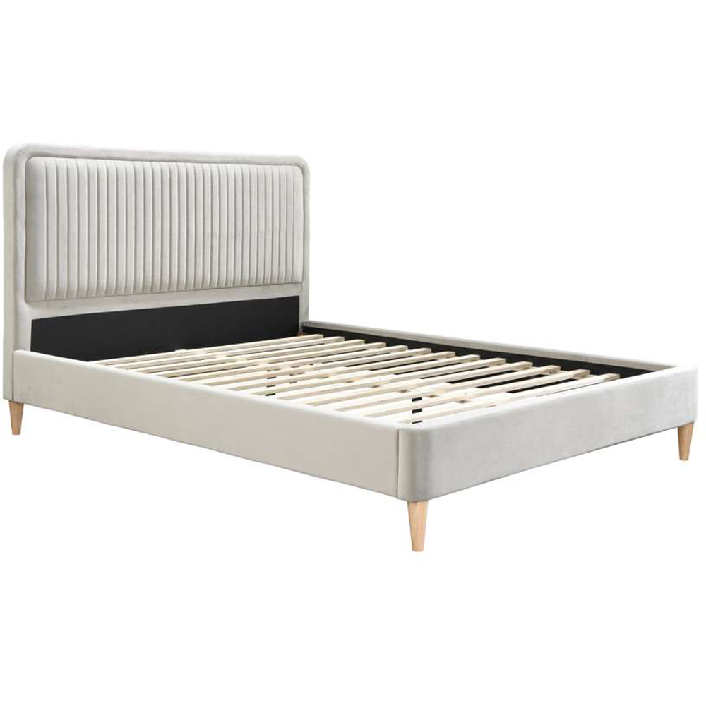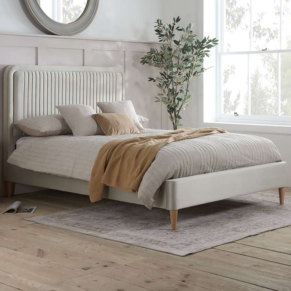 Crafted in a warm stone fabric, this bed is the epitome of sophistication. The headboard, with its vertical channel detailing, offers a contemporary twist on classic design, providing both visual and tactile allure. Standing on slender, tapered wooden legs, this bed frame evokes a sense of space and openness, making it an excellent choice for both minimalistic and ornately decorated bedrooms. Please note: This bed has been tailored to fit a UK standard-size mattress, with the recommended maximum mattress height being 305mm, to guarantee both aesthetics and functionality.