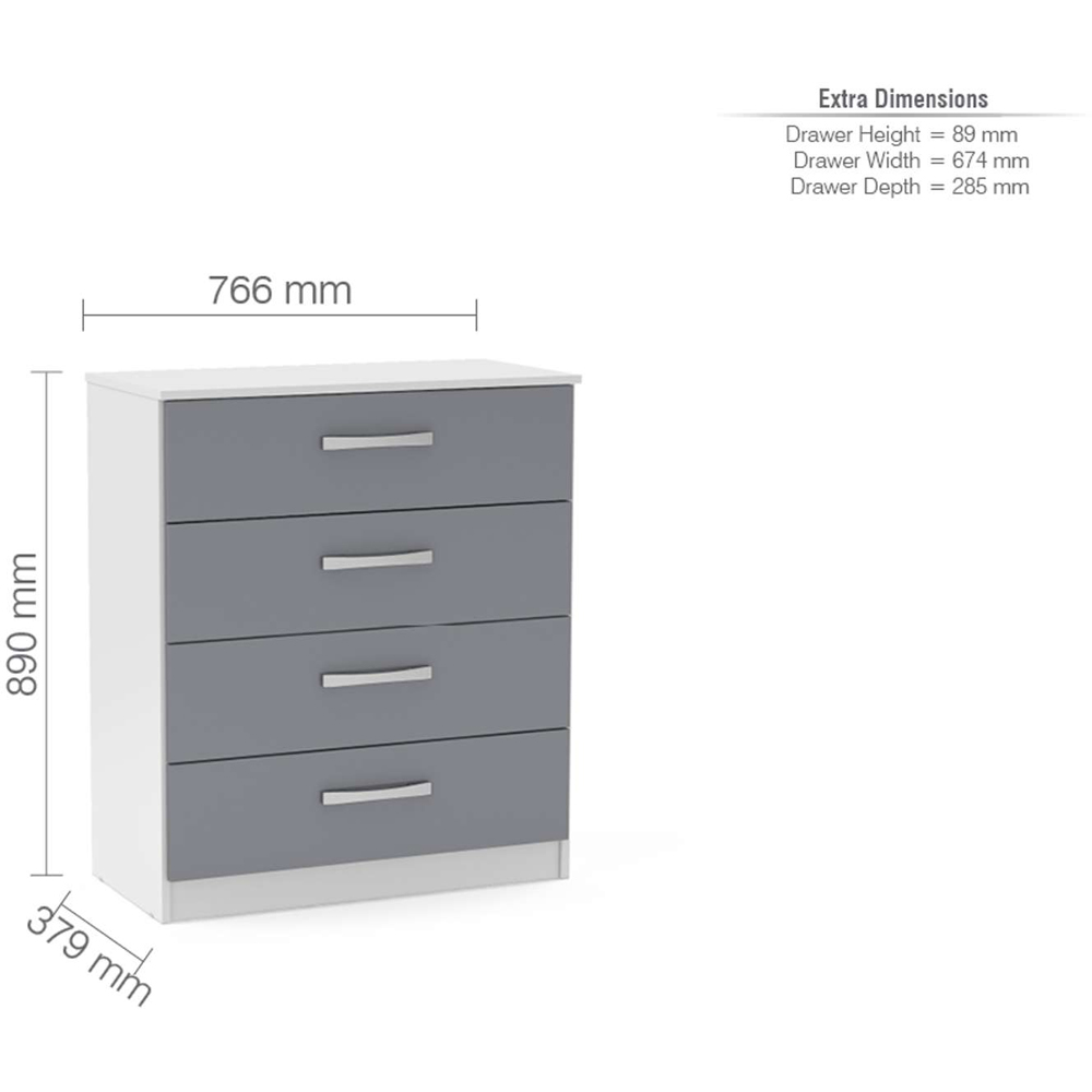 Birlea Lynx White and Grey 4 Piece Bedroom Furniture Set