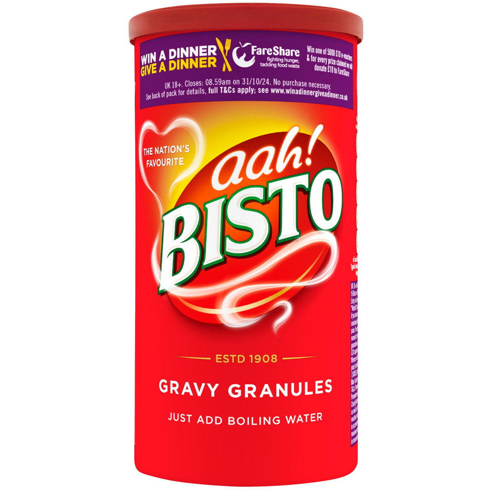 Part Of Family Mealtimes Since 1908, Bisto Brings An Unmistakable Savoury Flavour And Comforting Aroma That Makes An Aah! Bisto Moment. Our Flavoursome Gravy Granules Are Low In Fat And Sugar And Suitable For Vegetarians. A Cupboard Essential, The Nation's Favourite Gravy Is Ready In Seconds So You Can Enjoy It Hassle-Free. Serve On The Side To Add A Finishing Touch To Midweek Meals, A Hearty Plate Of Pie And Mash And, Of Course, Your Famous Sunday Roast. Simply Add Boiling Water To Four Heaped Teaspoons Of This Gravy And Stir Well, Adding More Or Less To Taste. Delicious And Easy To Make, This Gravy Goes Perfectly With A Lovingly Made Meal To Bring Family And Friends Together. The Nation's Favourite. Just Add Boiling Water. Low Sugar Low Fat. Suitable For Vegetarians. Bisto.