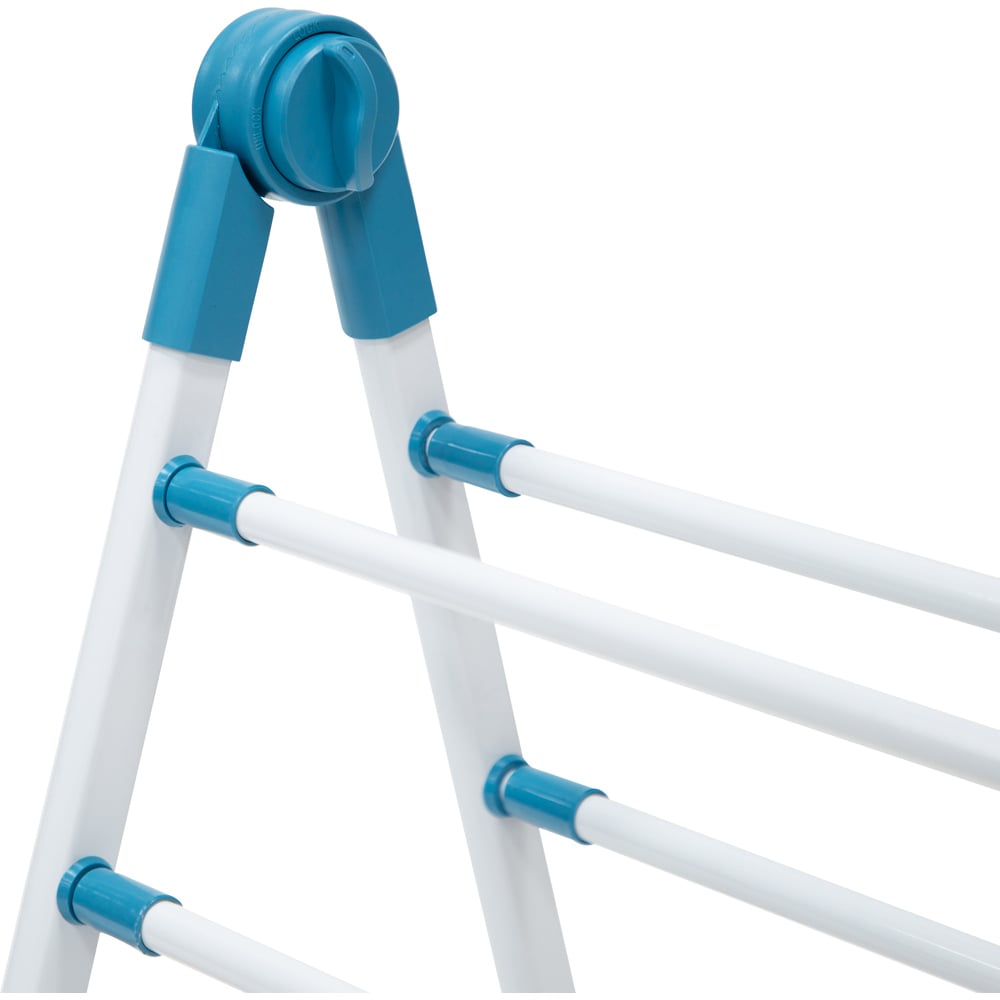 Make a practical addition to your home with the Black + Decker Aqua Over Bath Extendable Airer. It is ideal for drying many clothes at once while saving floor space that would be taken up by a normal dryer. This airer can be extended from a minimum length of 56.5cm up to a maximum length of 106.5cm. The extension allows it to fit over the vast majority of baths even with different widths. Its frame can be locked and unlocked to ensure stability while standing up, whether over a bath or on a surface. Once drying is complete, this airer can be neatly folded up to help make storage easier. Each of the ten drying bars provides a total surface of 5.6m for drying clothes and garments. The bars can hold a maximum weight of 0.8kg each, for a total load of 8kg across the whole airer.