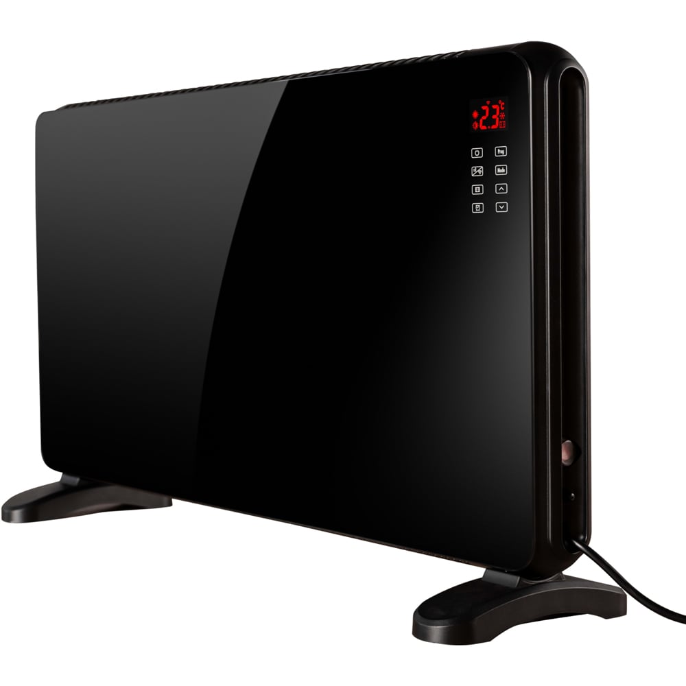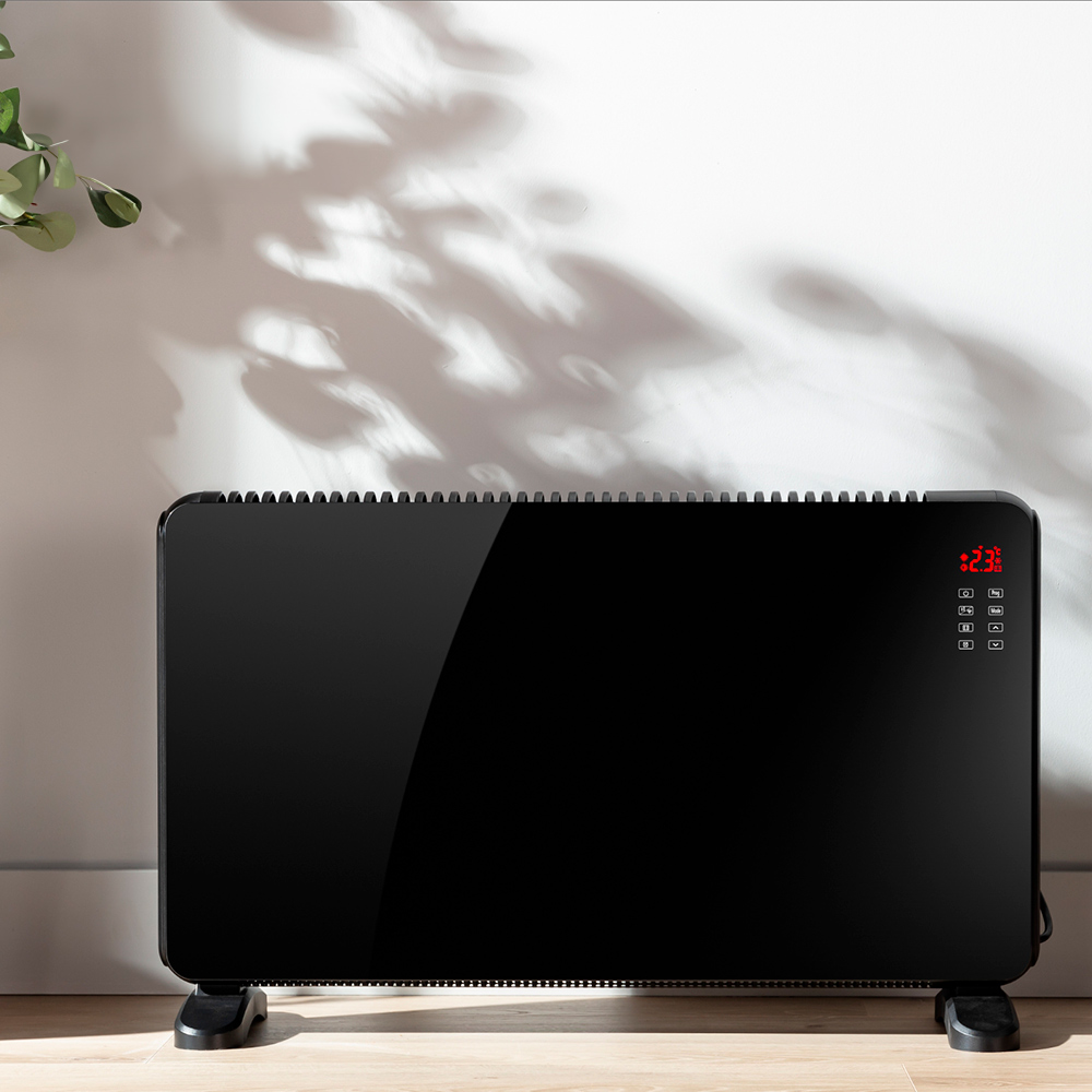 Rapidly warm up your home or office with this powerful 2KW Smart Glass Panel Heater from Black + Decker . Its ceramic heating technology circulates heat fast and efficiently, giving you instant warmth over the winter season. With the customised heat settings, you can set personalised schedules, and automation or tap to run settings using the Black + Decker Home App with Amazon Alexa, Google Home or a smartphone for added convenience. The easy-to-use LED display shows the current room climate, with the remote or app allowing you to adjust speed settings and temperature to maximise your comfort. The built-in eco sensor powers down the heater when a window is open to save energy during the warmer weeks. The programmable weekly timer allows you to set a weekly heating cycle at a specific time and day, the device works on your schedule to provide warmth when you need it. Colour: Black. Heat settings: 1000W and 2000W. Adjustable thermostat: 5-35C.