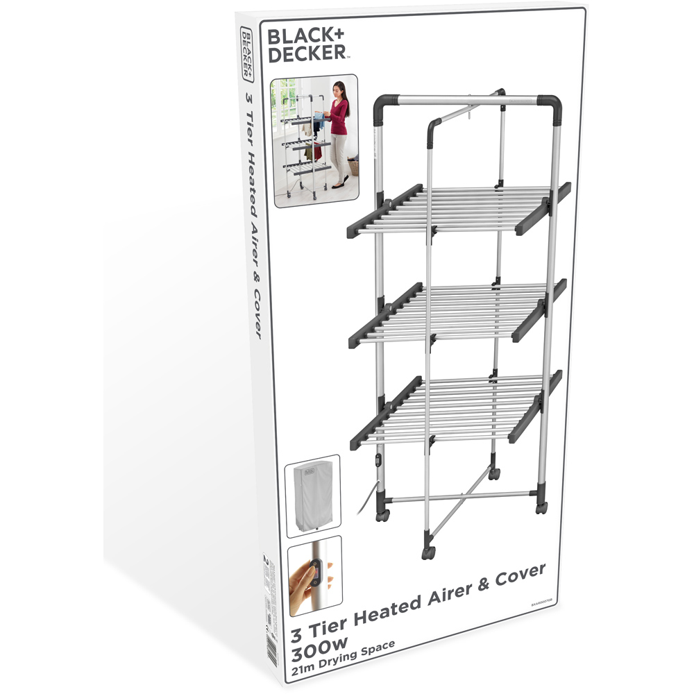 BLACK+DECKER Cool Grey 3 Tier Heated Airer 21m with Wheels and Cover