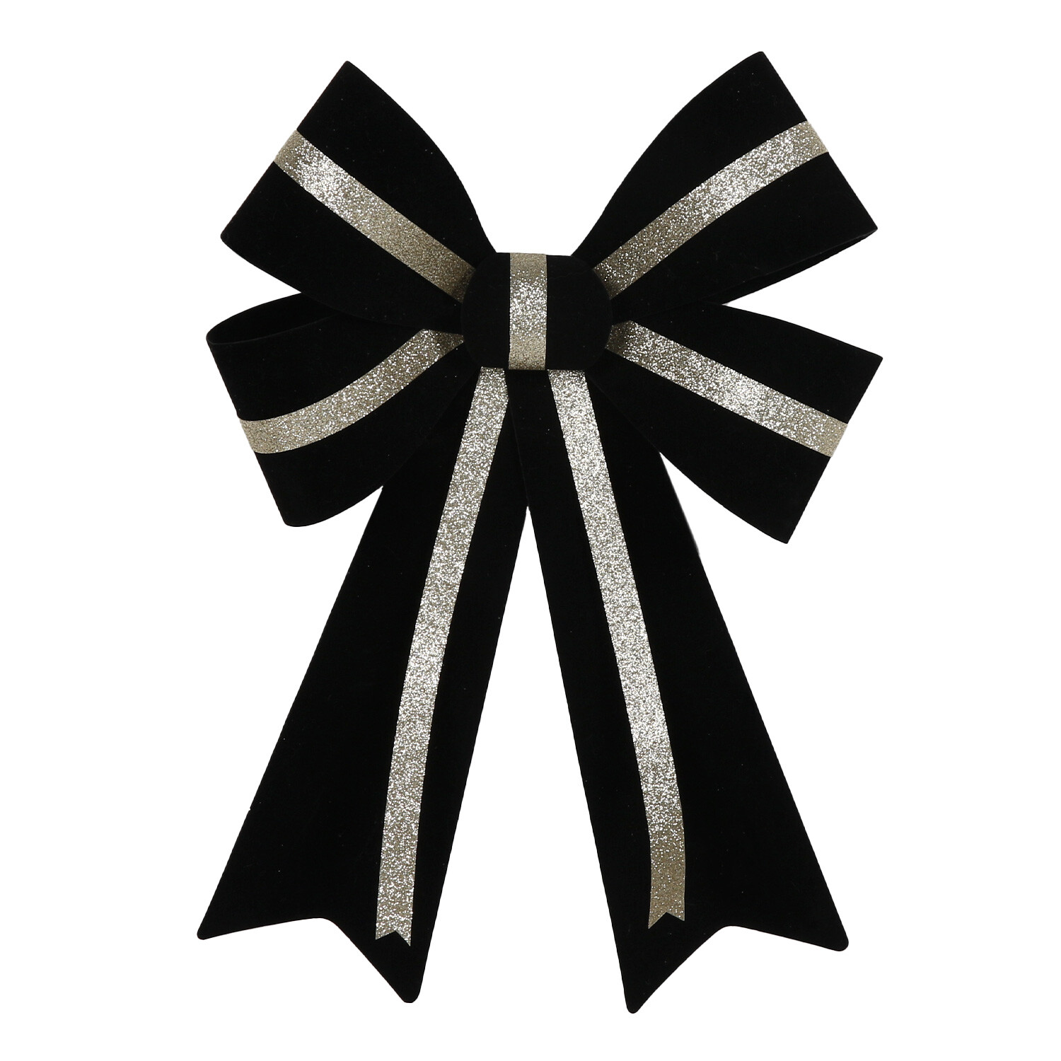 This beautiful Black and Champagne Bow is the perfect addition to any Christmas tree, window, door, or shelf and will bring a touch of holiday cheer to your home this winter. With its chic black and gold colour scheme and sparkling glitter accents, this bow is a stylish and eye-catching addition to your festive celebrations.