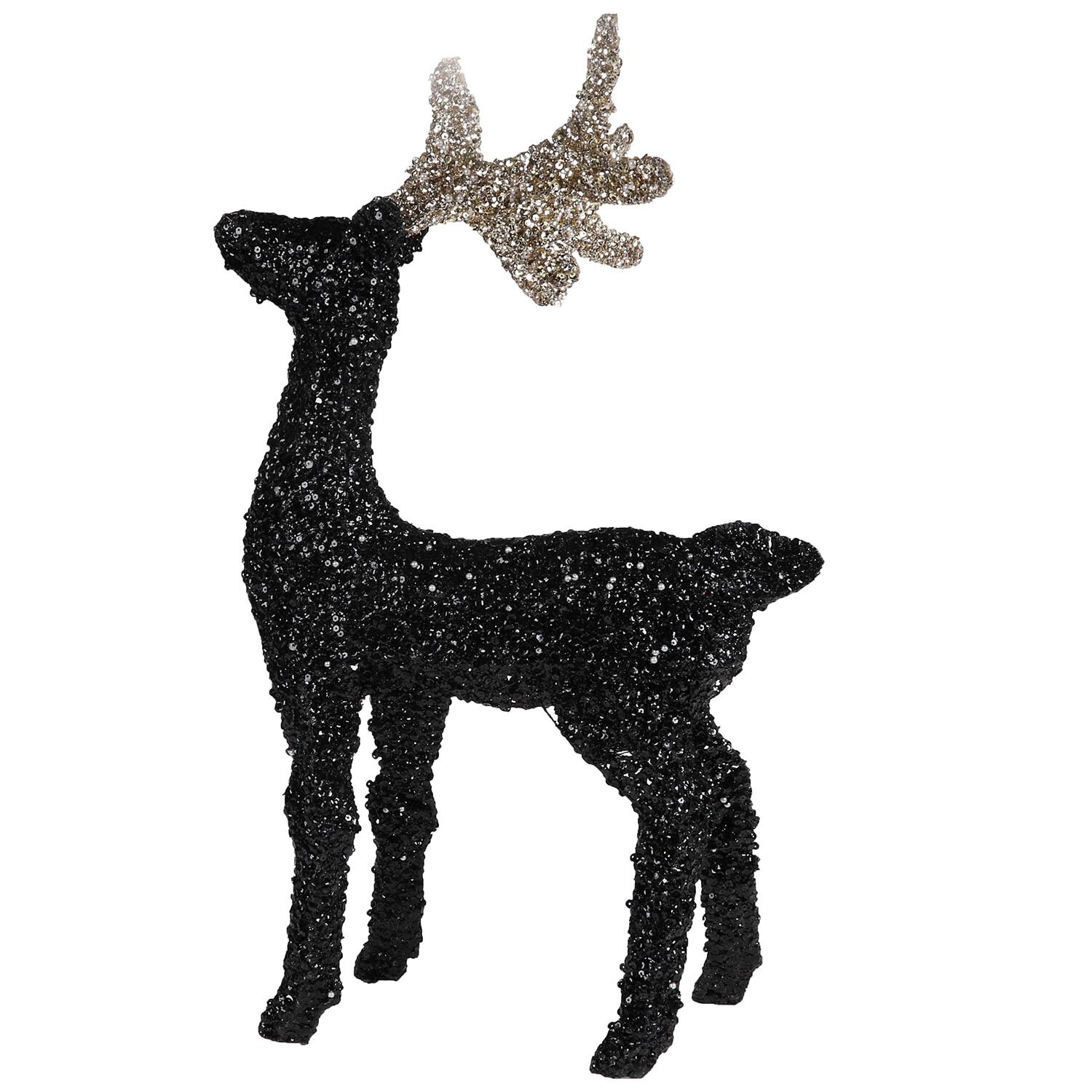 Regal and opulent, the Black and Gold Standing Reindeer is a glamorous addition to any home over Christmas. This charming Christmas decoration is perfect for adding sparkle to your space and will look fabulous displayed on accent tables, shelves, and mantelpieces. The glitter helps to create a sparkling display, whilst the black and gold colours offer a chic and contemporary feel.