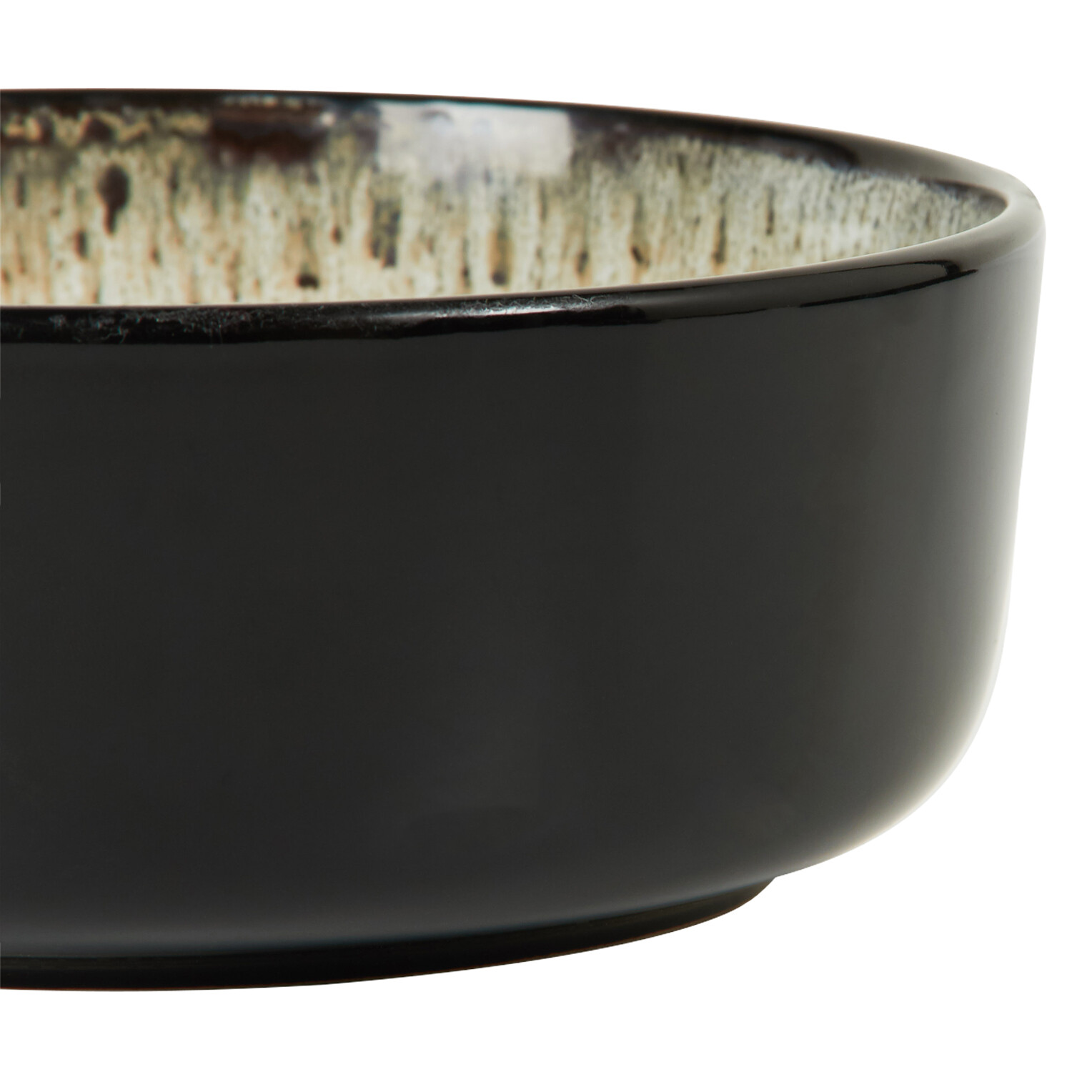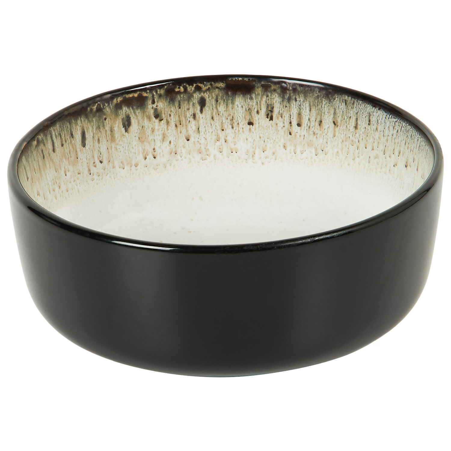 Elevate your meals with this elegant and timeless Black Kyanite Rice Bowl. This beautifully crafted reactive glaze bowl features a striking black outer and rim, with a smooth white center. Each piece is unique, thanks to the distinctive firing process used to create it.