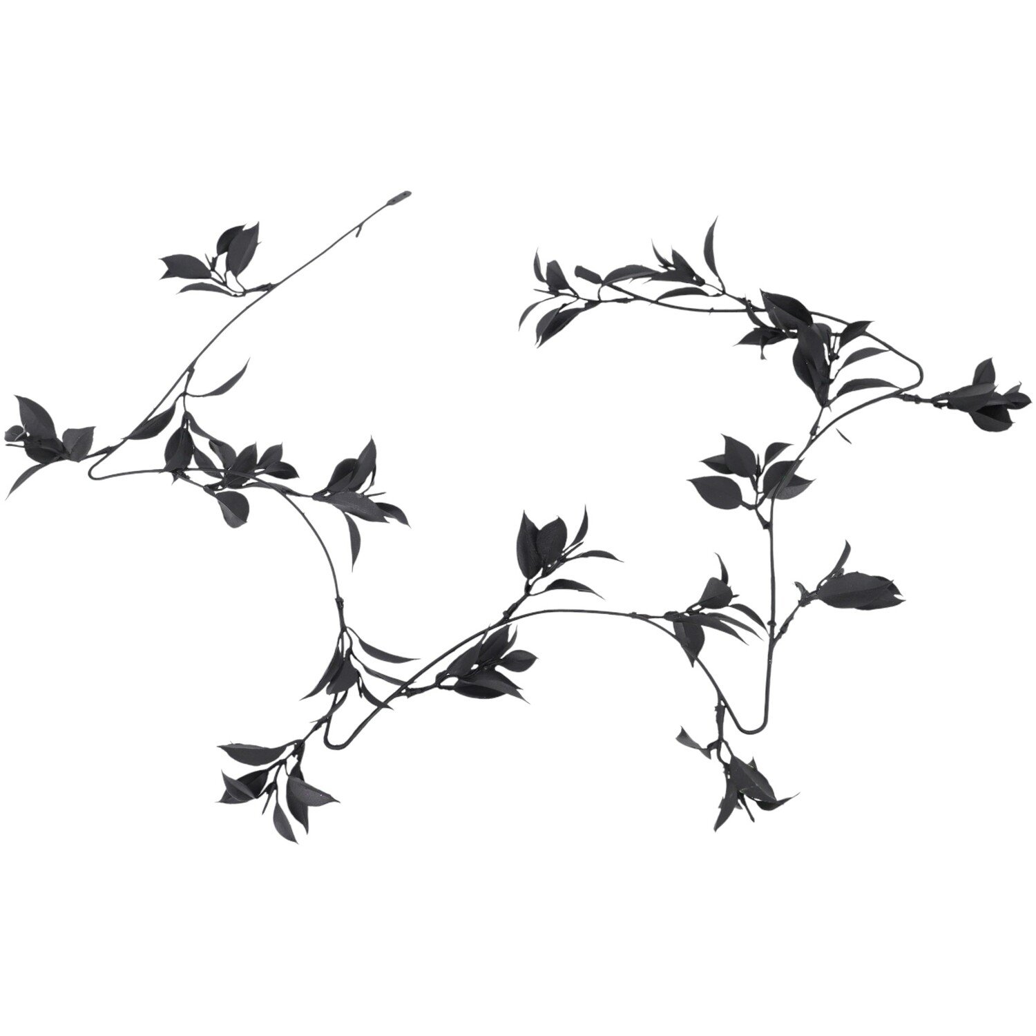 Create a spooky atmosphere with this Black Leaf Garland. Its dark, eerie design adds a haunting touch, elevating any festive decor effortlessly. Lightweight and easy to hang, just drape it over mantles, railings, and doors to create a gloomy ambience in your home.