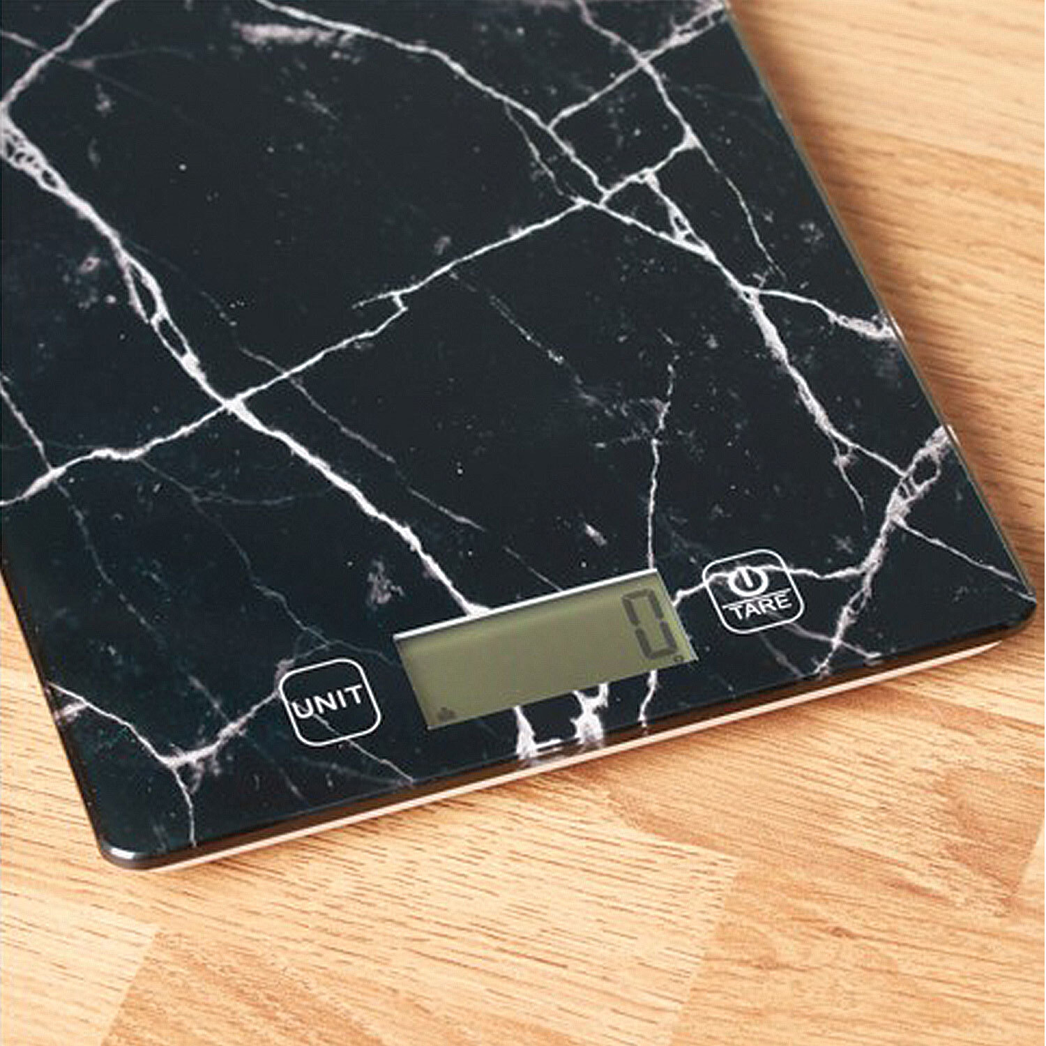 Make sure your ingredient measurements are always accurate with help from this Black Marble Electronic Kitchen Scale. Designed with a tare function and a wipe-clean glass top, this is an extremely useful addition to your kitchen. Whether you are baking a cake or weighing out your coffee beans, this scale makes sure you always have the perfect amount.