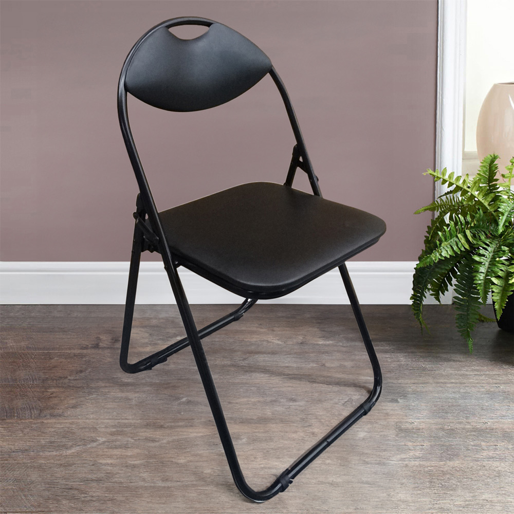 This simple, black folding chair is the perfect solution when you need an extra seat. Ideal for gatherings or last minute guests, the chair can be put up in seconds and then stashed away tidily when not needed. The steel tube design is durable and the padded seat makes it super comfortable too.