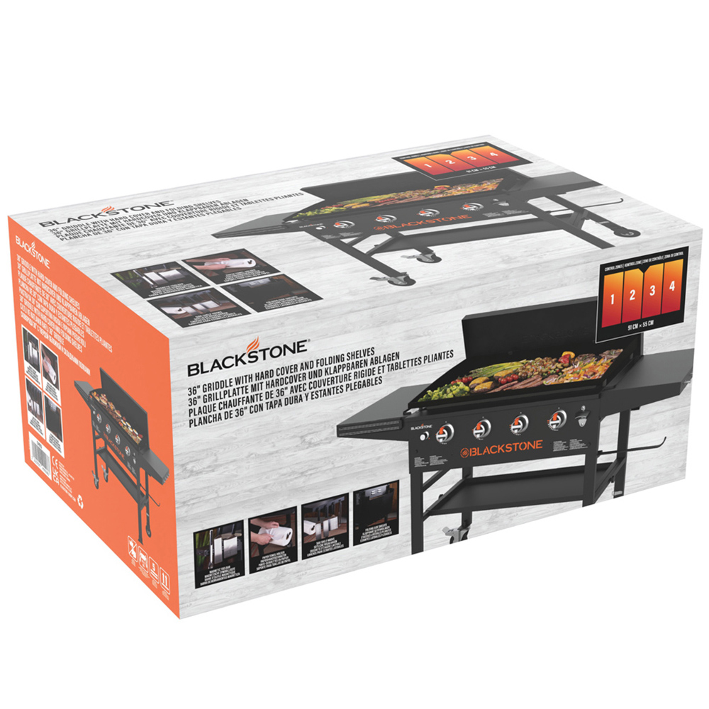 Take control of outdoor cooking like a pro using the Blackstone 257-2149EU Griddle with Hard Cover 36 inch. It is built for cooks who need space, power, and reliability. Whether it’s a full breakfast spread or burgers for a crowd, this griddle is designed to handle it fast and efficiently. With four independently controlled cooking zones, you can manage heat across the entire surface and cook multiple foods at once. The large 768 square inches of cooking space gives you the space you need to cook for the whole family. The powerful 60,000 BTUs of total heat output delivers even heat, so every dish comes out just right. You also get dual folding side shelves for prepping and serving, and they fold down for easy storage. The magnetic utensil retention strip keeps your tools handy. The built-in bottle opener means you are always ready to relax while the griddle does its job. The pivoting paper towel holder makes quick cleanups even easier. Cleaning up is easy with the rear grease management system, and you can get started in seconds with electric ignition. The included hard cover protects your griddle surface when not in use and keeps it clean between cooks.