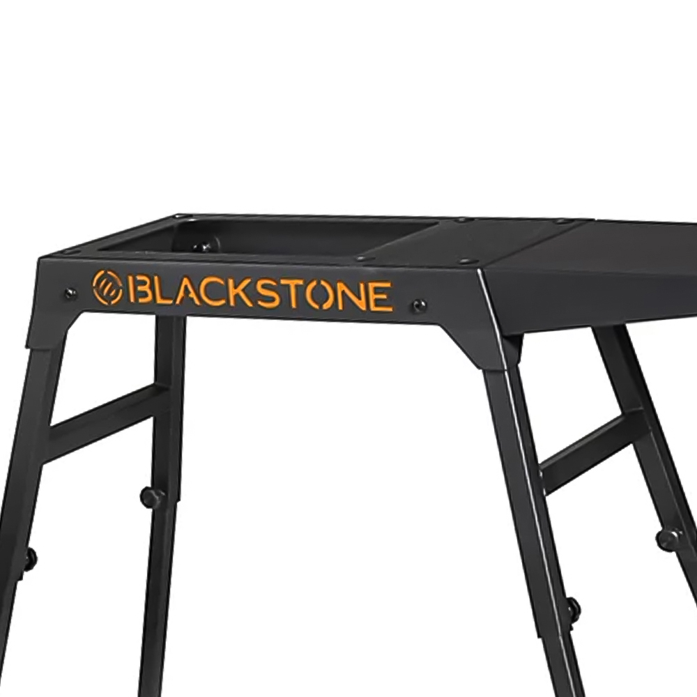 Set up and cook anywhere with ease using the Blackstone Foldable Tabletop Griddle Stand 17-22 inch. It is the ideal base for your 17 inch to 22 inch griddle, offering a sturdy, comfortable cooking height no matter where you are. Whether you are grilling at a campsite, picnic, or on your patio, this stand keeps things stable and simple. Crafted from durable steel with a black powder-coated finish, it is built to handle the outdoors. The lightweight, foldable design makes it easy to carry and store while locking legs provide a secure and steady setup in seconds.