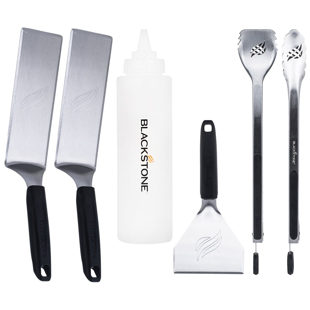 Make griddling easy with the Blackstone Griddle Tool Kit 6 Piece. This kit is built to handle every part of your outdoor cooking, from flipping and turning to basting and cleaning. This set includes a spatula, a griddle scraper, tongs, a basting brush, a fork, and a cleaning brush. Each tool is built with durable materials and ergonomic handles. Whether you are searing steaks or cleaning up after a meal, this set keeps you fully equipped and ready to cook.