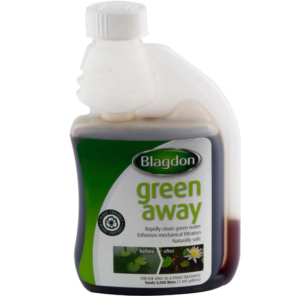 A naturally safe treatment for green water problems in your pond, this Green Away Pond Treatment removes the suspended algae which causes green water. Clumping algae together so that they drop out of suspension or get trapped in a filtration system, this makes water tap safe and protects your fish.