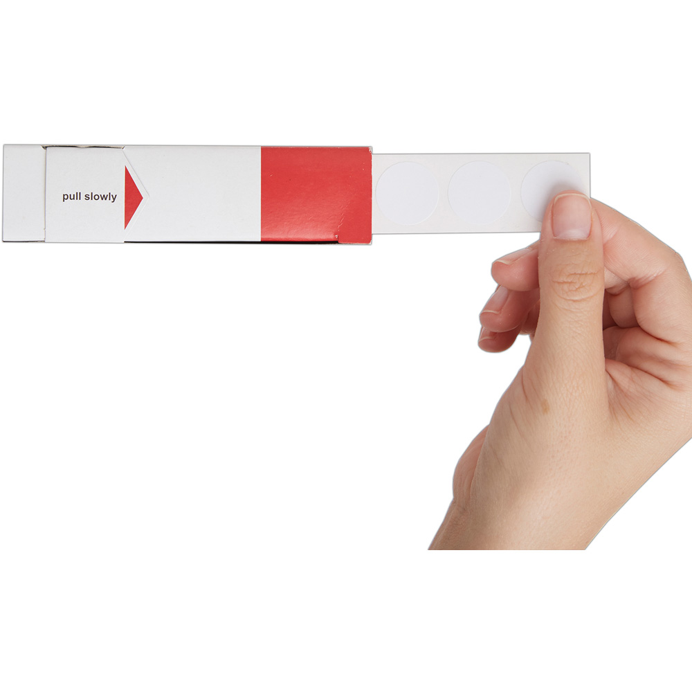 Go for an efficient solution for all your labelling needs with the Blick White Round Self Adhesive Label in Dispenser 19mm 1400 Pack. The product is specially designed to store and dispense large volumes of self-adhesive labels conveniently. With a tear-off dispenser, even the biggest labelling tasks are effortless and hassle-free. Plus, the labels are made from a sustainable source of paper, fully compliant with all timber regulations, and use a water-based adhesive, making them ideal for home, office, and warehouse use for all sorts of printers or projects. The labels are circular in shape and white in colour.