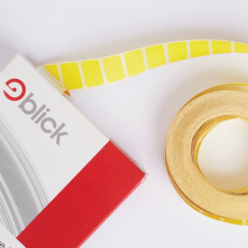 Go for an efficient solution for all your labelling needs with the Blick Yellow Rectangular Self Adhesive Label in Dispenser 12 x 18mm 1792 Pack. The product is specially designed to store and dispense large volumes of self-adhesive labels conveniently. With a tear-off dispenser, even the biggest labelling tasks are effortless and hassle-free. Plus, the labels are made from a sustainable source of paper, fully compliant with all timber regulations, and use a water-based adhesive, making them ideal for all sorts of printers or projects. The labels are rectangular in shape and yellow in colour.