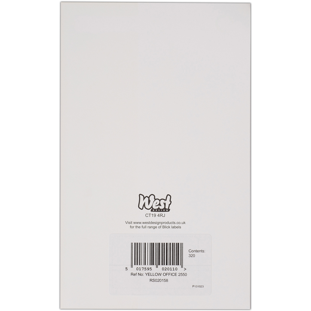 Explore the convenience of self-adhesive stickers for effortless organisation and personalization with Blick Yellow Rectangular Self Adhesive Office Stickers 25 x 50mm 320 Pack. It can be used for home, office and computer labels, tags and reinforcements. Blick’s expansive range of labels comes in various shapes, sizes, colours and configurations, making them great for all sorts of printers or projects. Manufactured in Plymouth, UK.