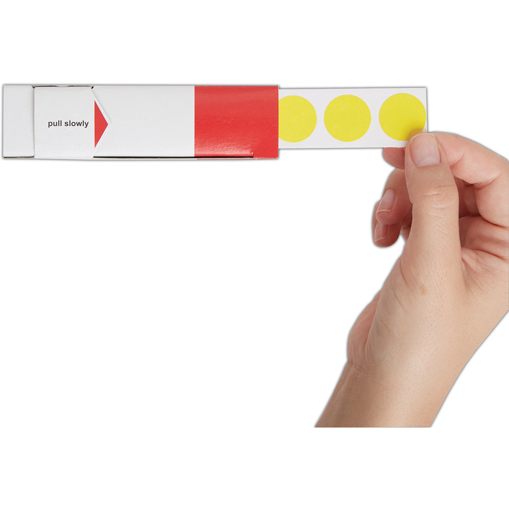 Go for an efficient solution for all your labelling needs with the Blick Yellow Round Self Adhesive Label in Dispenser 19mm 1280 Pack. The product is specially designed to store and dispense large volumes of self-adhesive labels conveniently. With a tear-off dispenser, even the biggest labelling tasks are effortless and hassle-free. Plus, the labels are made from a sustainable source of paper, fully compliant with all timber regulations, and use a water-based adhesive, making them ideal for all sorts of printers or projects. The labels are round in shape and yellow in colour.