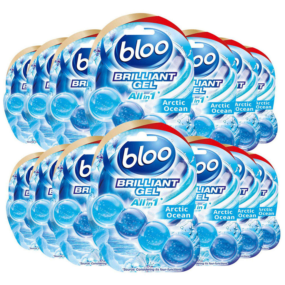 An innovation from Bloo! New Bloo Brilliant Gel with its all-in-one formula with four functions, not only cleans the toilet in every flush but also provides freshness and a brilliant shine. Bloo Brilliant Gel is our brilliant solution for your toilet. Features: Power Foam: Cleans the toilet with every flush Dirt Protect: Prevents new dirt from sticking Perfume Fresh: Freshness in every flush, with a subtle scent inspired by fine fragrances Brilliant Shine: Brilliant toilets, no residues and fast dissolution +20% more flushes: Bloo Brilliant gel provides +20% more flushes vs Power active Rim block Safety Warnings: Contains: Alcohols, C9-11, ethoxylated, Alcohols, C12-14, ethoxylated, sulfates, sodium salts. Causes serious eye damage. Contains 2-methylisothiazol-3(2H)-one. May produce an allergic reaction. Causes skin irritation. Causes serious eye damage. Harmful to aquatic life with long-lasting effects. Keep out of reach of children. Wear protective gloves and eye protection. If Eye contact: Rinse cautiously with water for several minutes. Remove contact lenses, if present and easy to do. Continue rinsing. Box Contains: Bloo Toilet Rim Block Brilliant Gel All in 1 Cleaner Arctic Ocean Scent 42g 14pk.