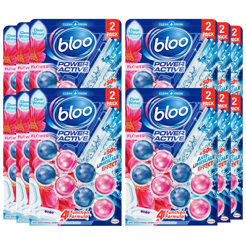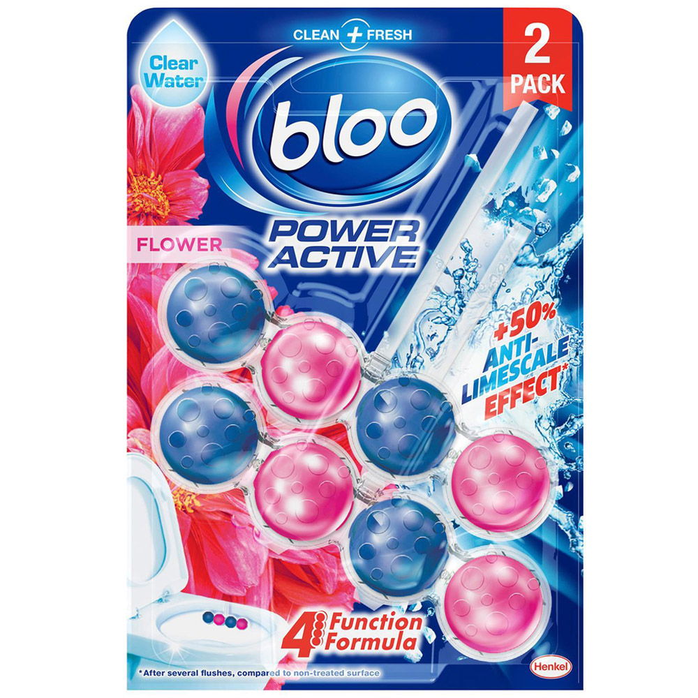 Make your loo the best seat in the house with a boost of floral scent flush after flush. Bloo Power Active Fresh Flowers Toilet Rim Block is an innovative rim block which combines design and function in one. A hygienically clean and fresh toilet with every flush. Every ball is loaded with a perfumed core that has 40% more fragrance freshness vs the outer shell, giving a boost of fragrance from the first to the last flush. Safe for use in septic tanks. With its unique Bloo 4 functions formula, Bloo Power Active prevents limescale and provides cleaning foam, dirt protection and extra freshness for your toilet. 100% anti-limescale to keep the loo hygienically clean in between deep cleans and a strong foaming action preventing dirt and grime Simply place the product on the rim of your toilet, adjust it to the water flow and experience boosted freshness and cleanliness with every flush. Fresh and clean: Let Bloo rim blocks give you a hygienically clean and fresh look as well as a burst of fragrance from this toilet cleaner block with every flush Toilet limescale remover: This Bloo rim block creates a strong foaming action to prevent dirt and limescale, keeping the loo hygienically clean in between deep cleans Air freshener effect: Every ball in this toilet freshener is loaded with a perfumed core that has 40% more fragrance freshness when compared to the outer shell Long lasting: Each rim block lasts up to 240 flushes and contains a premium fragrance blend to keep your toilet smelling and looking its best Product details: Bloo Power Active Fresh Flowers Toilet Block. Fresh Flowers fragrance with air freshener effect. Pack of 1 (50g). It lasts up to 240 flushes Box Contains: Bloo Toilet Rim Blocks Power Active Flower w/ 4 Function Cleaning Formula, 2x50g 12pk.