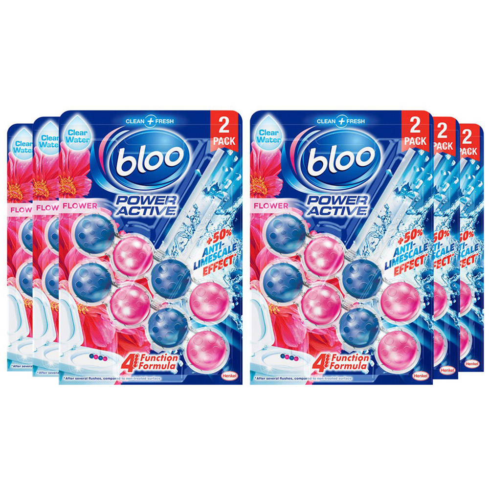 Make your loo the best seat in the house with a boost of floral scent flush after flush. Bloo Power Active Fresh Flowers Toilet Rim Block is an innovative rim block which combines design and function in one. A hygienically clean and fresh toilet with every flush. Every ball is loaded with a perfumed core that has 40% more fragrance freshness vs the outer shell, giving a boost of fragrance from the first to the last flush. Safe for use in septic tanks. With its unique Bloo 4 functions formula, Bloo Power Active prevents limescale and provides cleaning foam, dirt protection and extra freshness for your toilet. 100% anti-limescale to keep the loo hygienically clean in between deep cleans and a strong foaming action preventing dirt and grime Simply place the product on the rim of your toilet, adjust it to the water flow and experience boosted freshness and cleanliness with every flush. Fresh and clean: Let Bloo rim blocks give you a hygienically clean and fresh look as well as a burst of fragrance from this toilet cleaner block with every flush Toilet limescale remover: This Bloo rim block creates a strong foaming action to prevent dirt and limescale, keeping the loo hygienically clean in between deep cleans Air freshener effect: Every ball in this toilet freshener is loaded with a perfumed core that has 40% more fragrance freshness when compared to the outer shell Long lasting: Each rim block lasts up to 240 flushes and contains a premium fragrance blend to keep your toilet smelling and looking its best Product details: Bloo Power Active Fresh Flowers Toilet Block. Fresh Flowers fragrance with air freshener effect. Pack of 1 (50g). Lasts up to 240 flushes Box Contains: 6 Pack of Bloo Power Active Flower Toilet Rim Blocks, 2x50g.